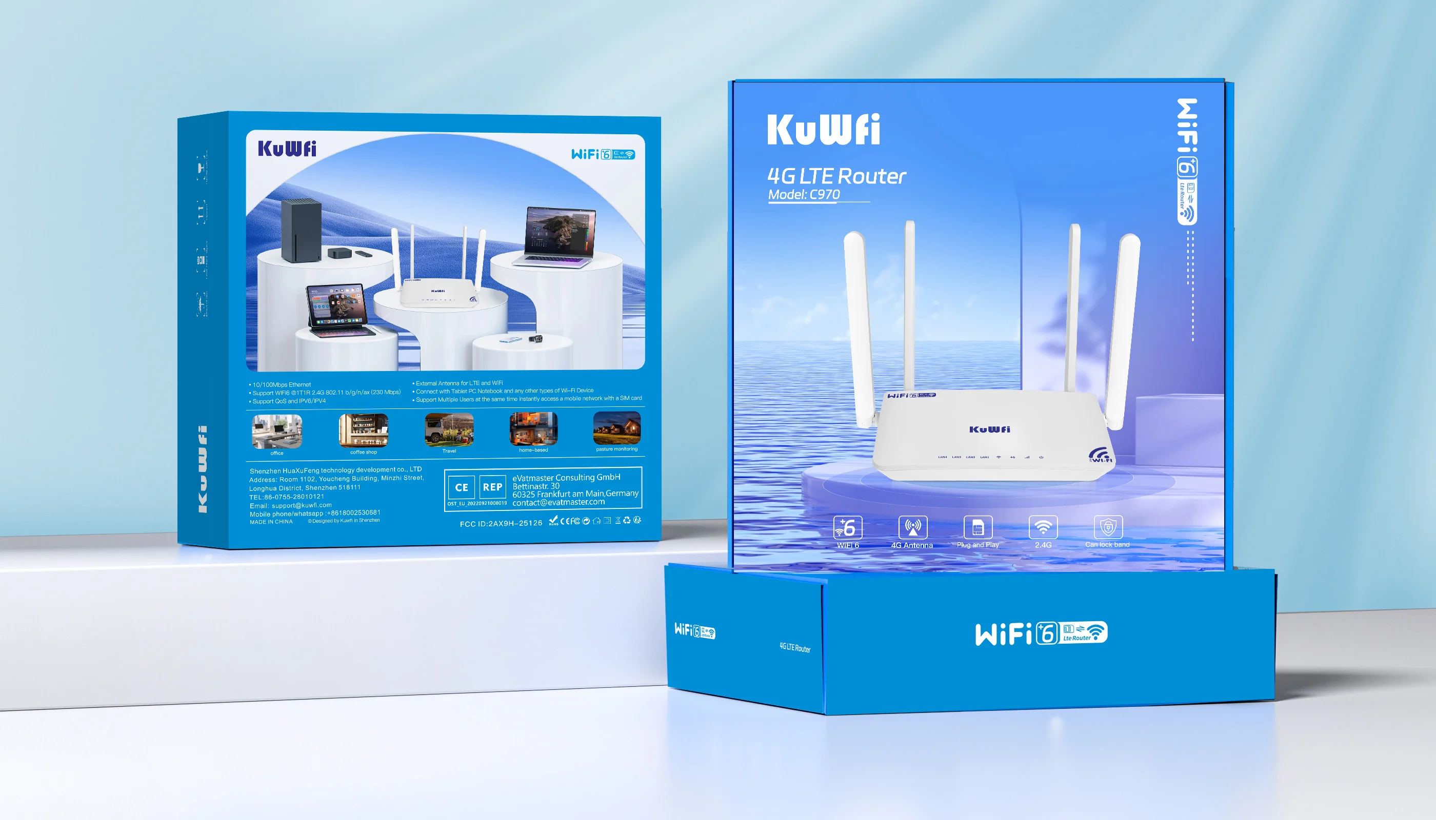 KuWFi C970 es un equipo premisa para clientes internos (CPE) WiFi 6 4G que proporciona un rendimiento de acceso inalámbrico superior y capacidades de enrutamiento integrales para llevar datos inalámbricos de banda ancha a los usuarios finales.Convierte señales TDD/FDD de alta velocidad en señales WiFi en la red de área local (LAN).Los dispositivos inalámbricos y con cable, incluidos teléfonos móviles, computadoras portátiles, tabletas y otros dispositivos inteligentes, pueden acceder al enrutador CPE simultáneamente.