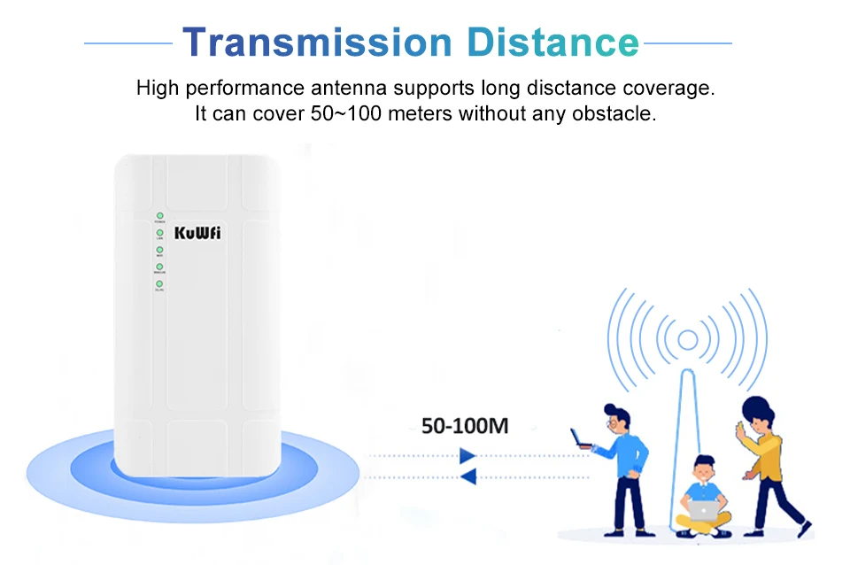 Comprar Enrutador KuWFi para exteriores 4G LTE, enrutador CPE inalámbrico de alta potencia de 300Mbps, enrutador Wi-fi CAT4 con adaptador POE de 24V para cámara IP