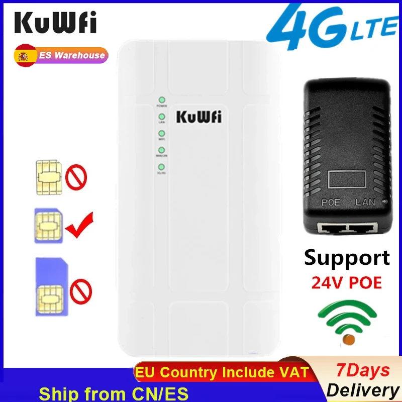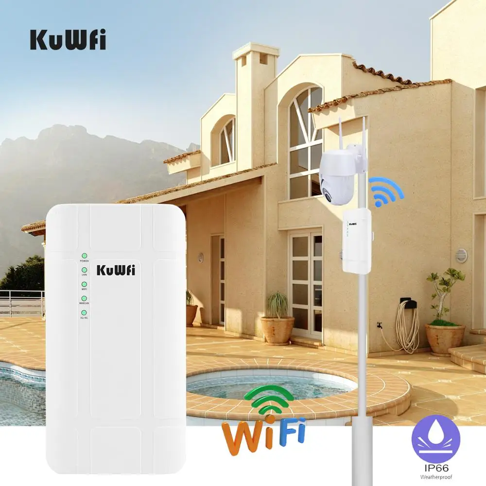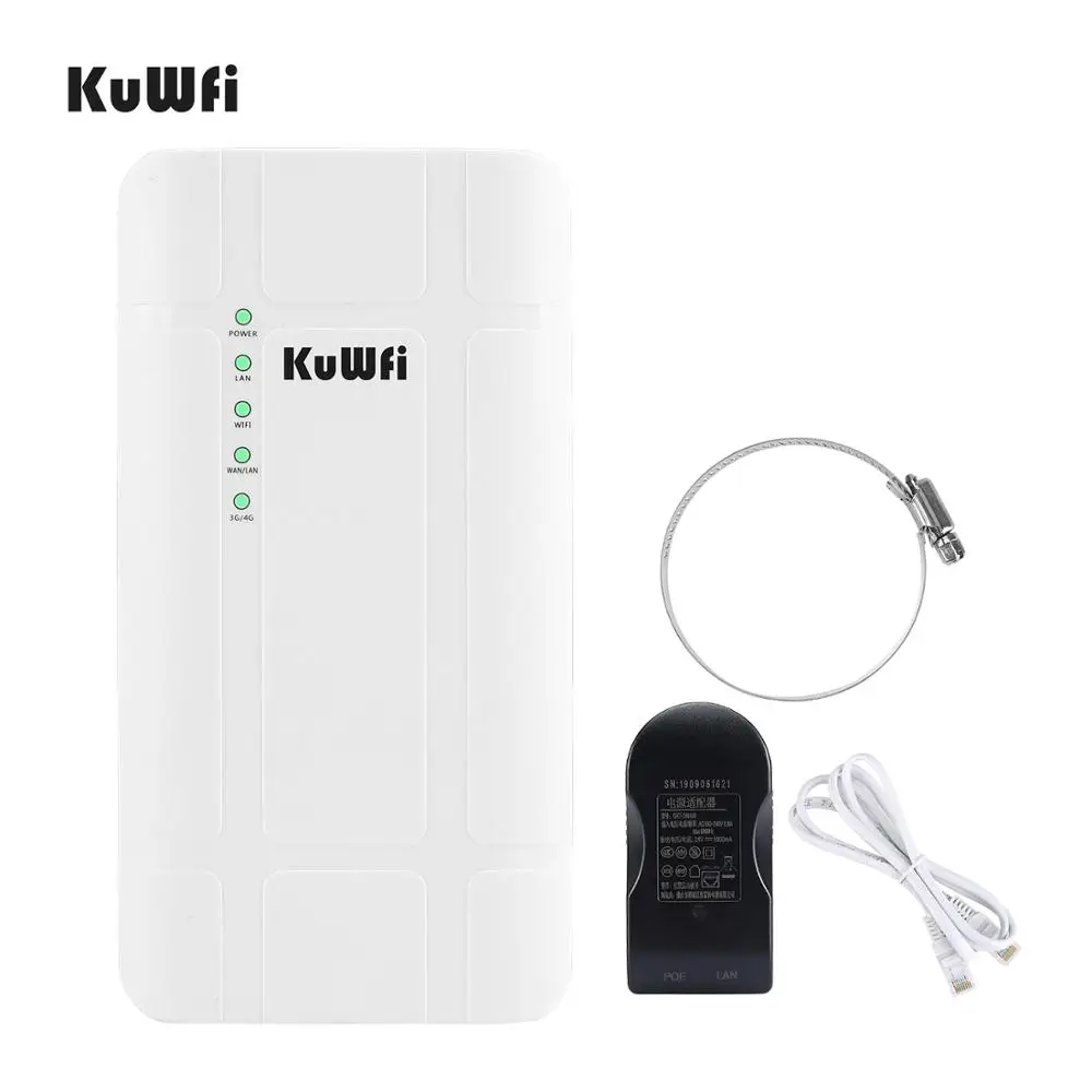 Comprar Enrutador KuWFi para exteriores 4G LTE, enrutador CPE inalámbrico de alta potencia de 300Mbps, enrutador Wi-fi CAT4 con adaptador POE de 24V para cámara IP