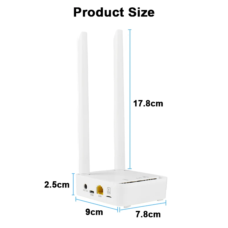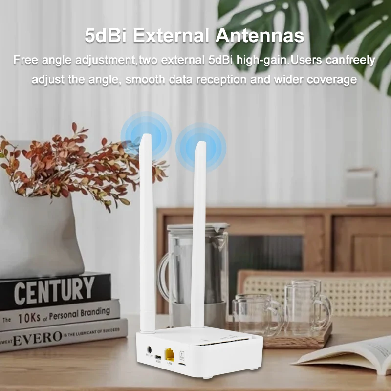 2 antenas externas giratorias libremente.Las antenas proporcionan una transmisión de señal más estable y mejor, incluida una antena 4G LTE y una antena Wi-Fi de 2,4 Ghz.