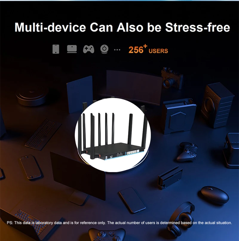 ● Admite MU-MIMO y el modo de modulación WiFi admite 1024-qam y OFDMA, puede conectar 256 usuarios de WiFi