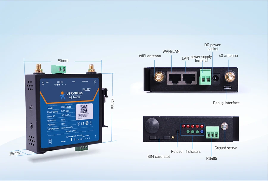El enrutador celular industrial 4G G806s es una combinación de enrutador 4G LTE y 4G DTU.