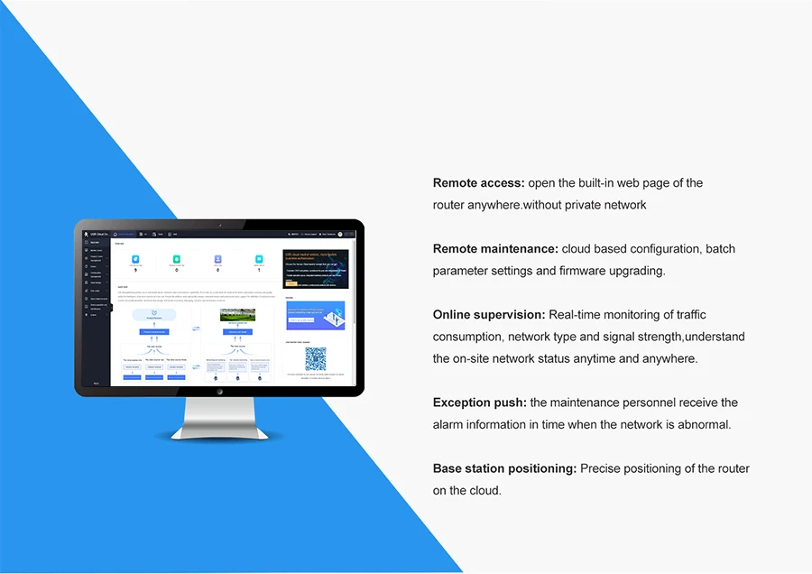 Monitoreo remoto, actualización remota, alarma, ubicación de la estación base, acceso remoto a las páginas web del enrutador