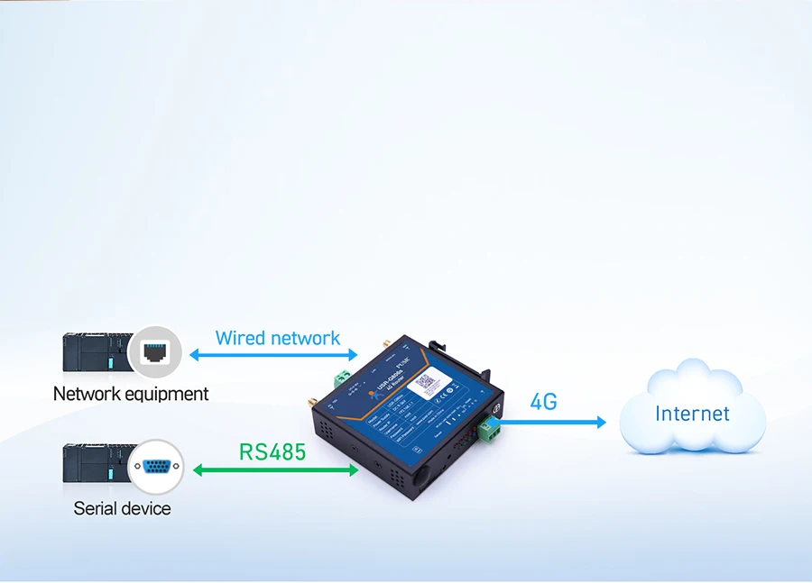 Transmisión transparente de datos entre dispositivos RS485 y red 4G,