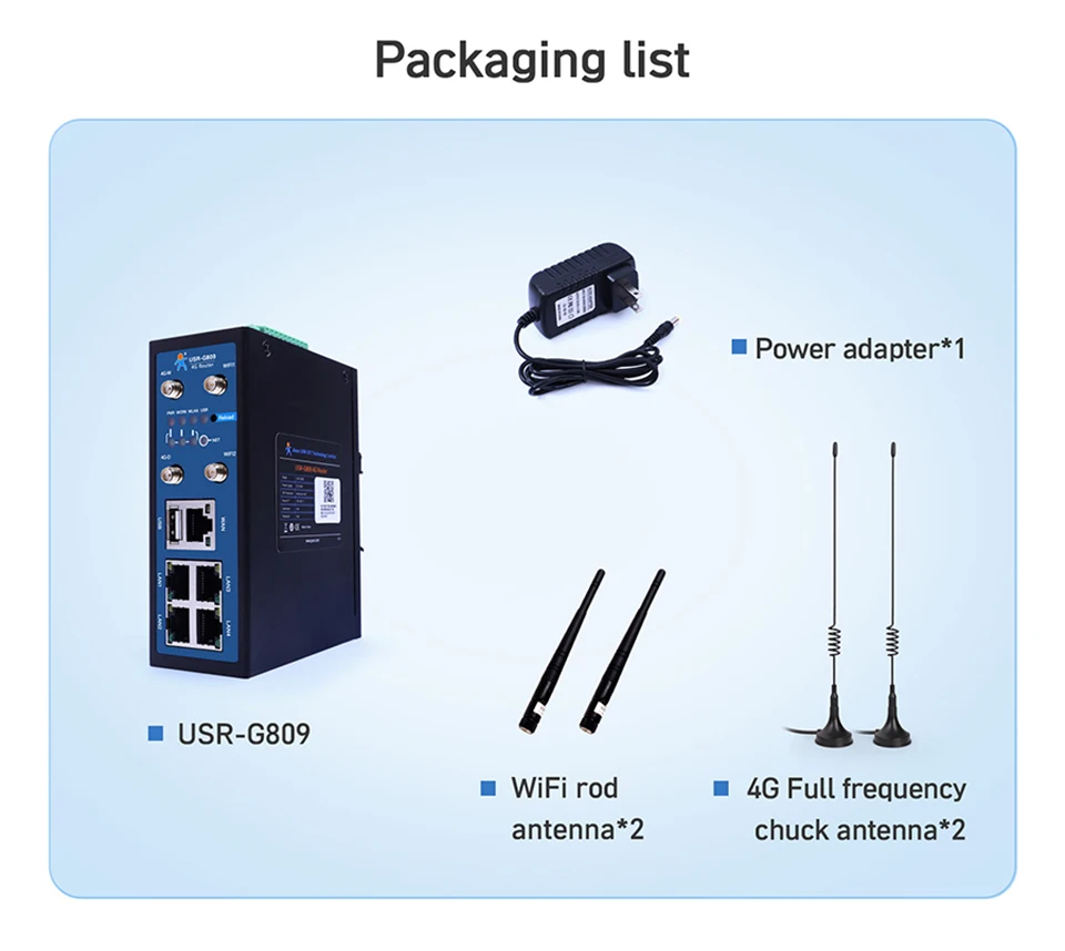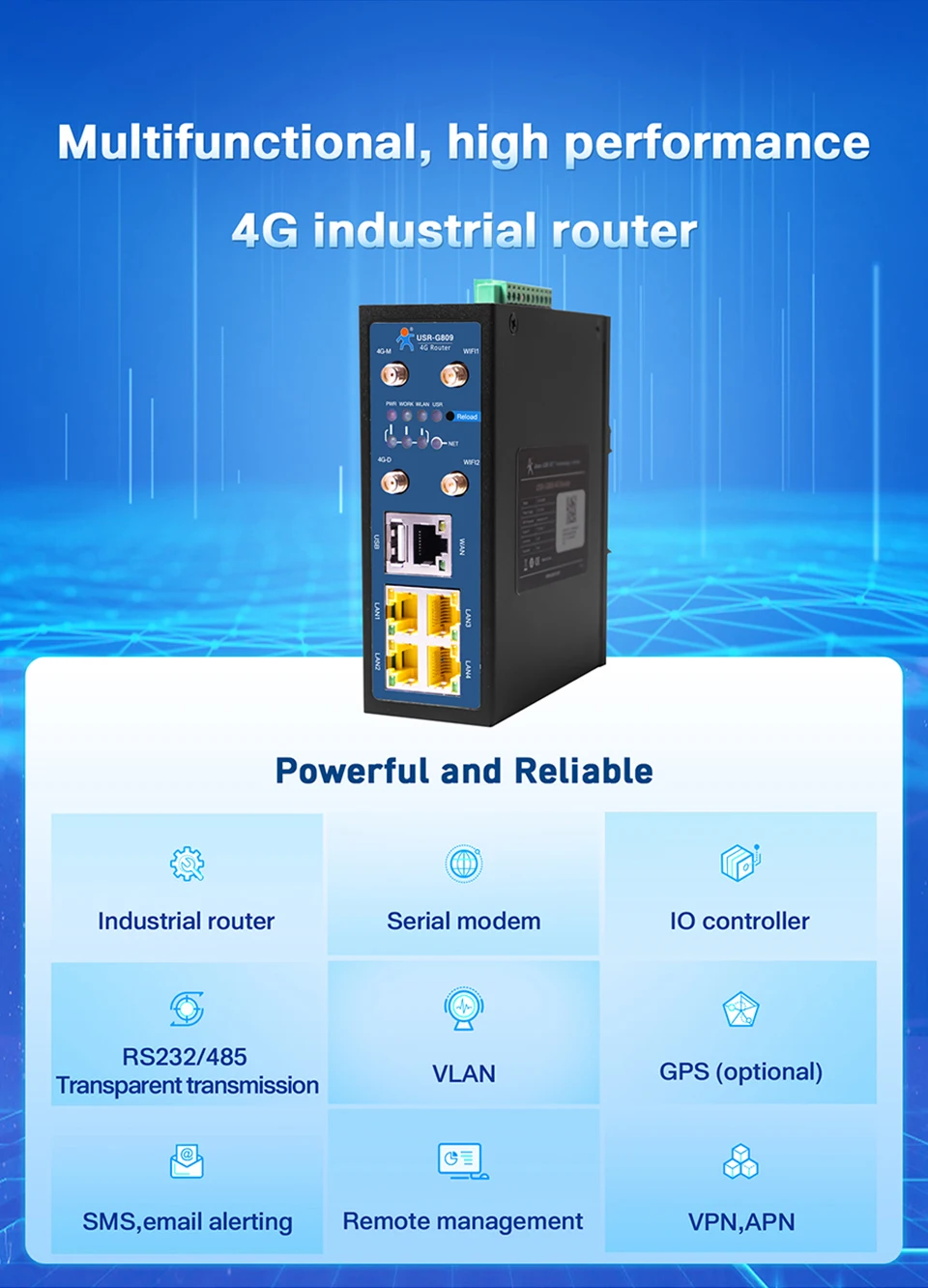 Comprar Enrutador VPN móvil Industrial USR-G809-EAU, 4G, LTE, Ethernet DI/DO, puerto serie R232/RS485 con antena de enchufe
