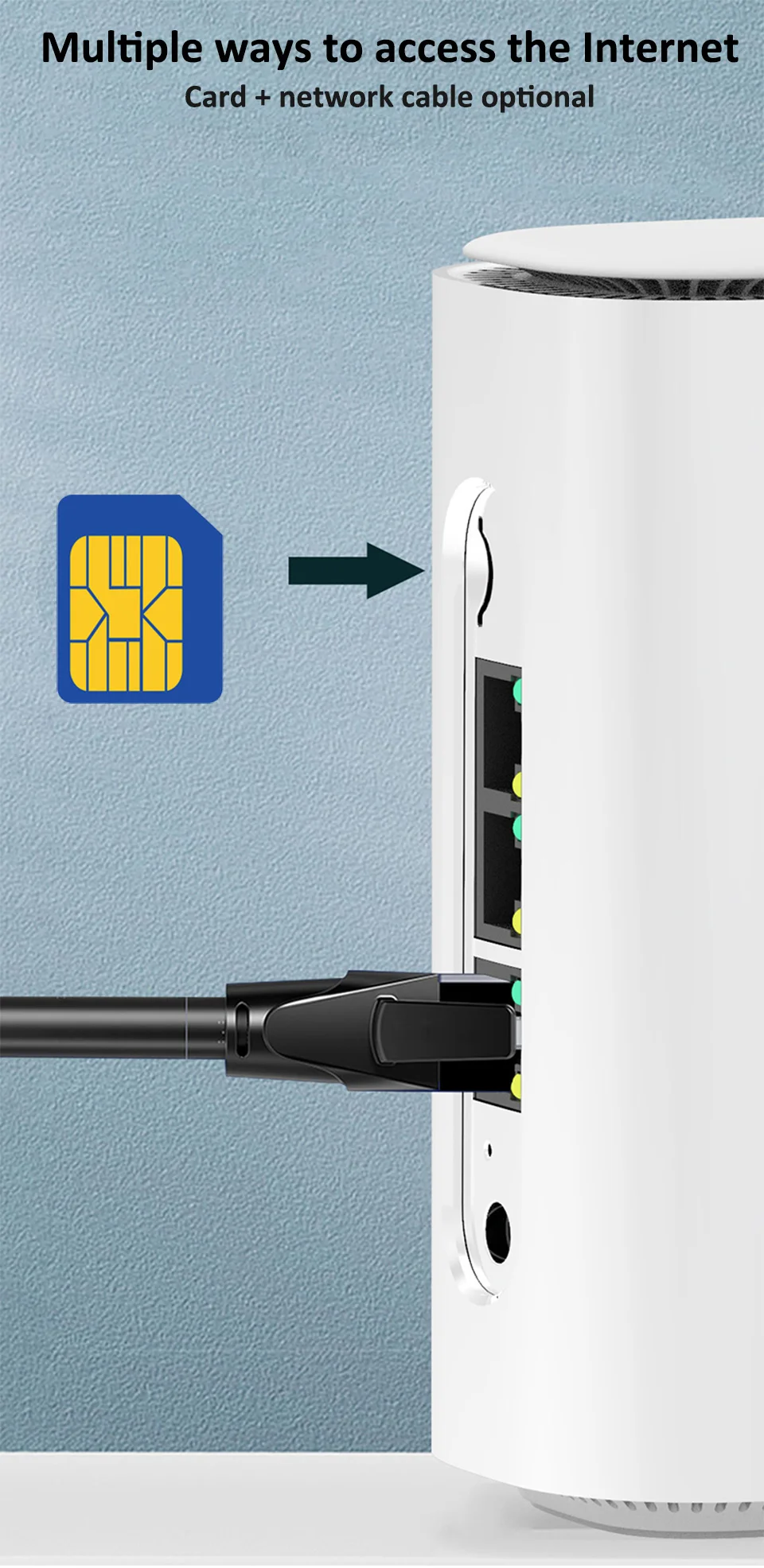 Tarjeta enchufable + cable de red enchufable, una variedad de métodos de acceso a Internet, 1 puerto de red WAN/LAN, 2 puertos de red LAN que admiten 4G a cableado