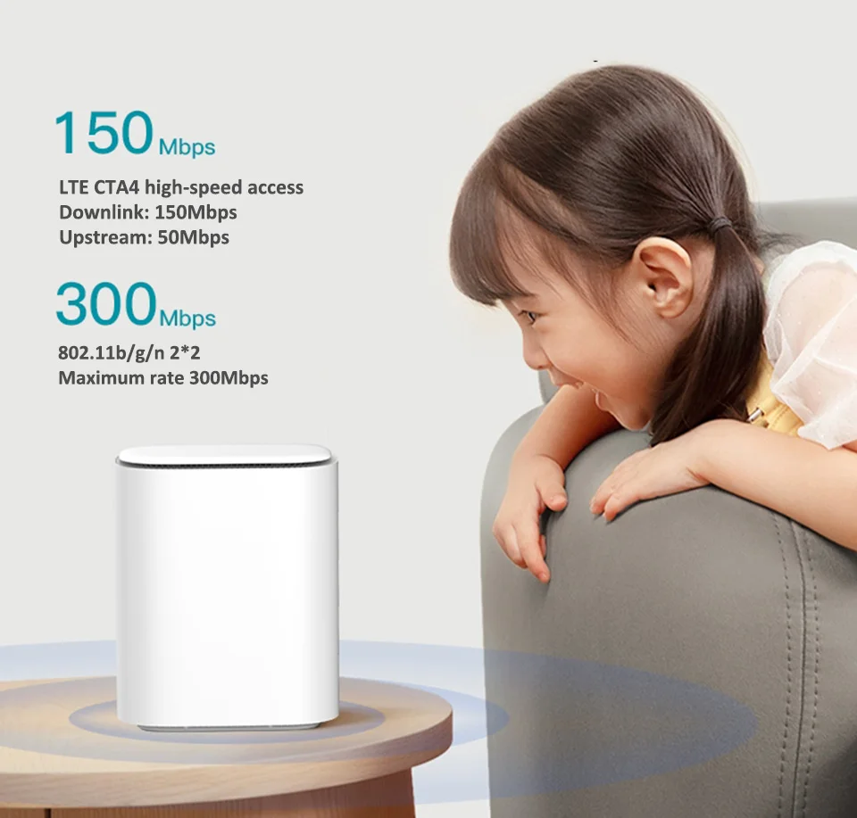 4G LTE CAT4 hasta 150 Mbps, Wi-Fi 300 Mbps, que le permite disfrutar de juegos/audio/vídeo/oficina/ y resolver sus problemas de red