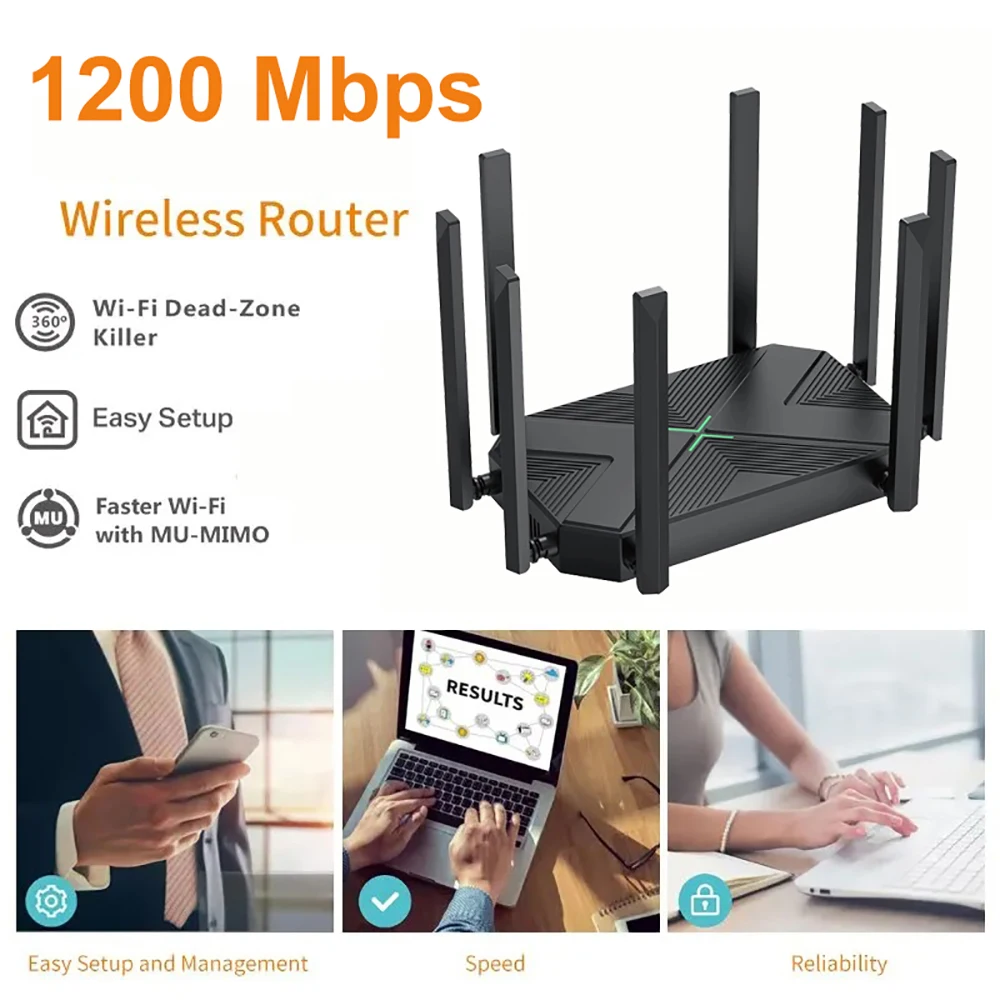 Comprar Enrutador WIFI AC1200, amplificador de señal Gigabit inalámbrico de 2,4G y 5GHz, antenas de alta ganancia de 8 x 5dBi, repetidor de red, extensor de Wi-Fi