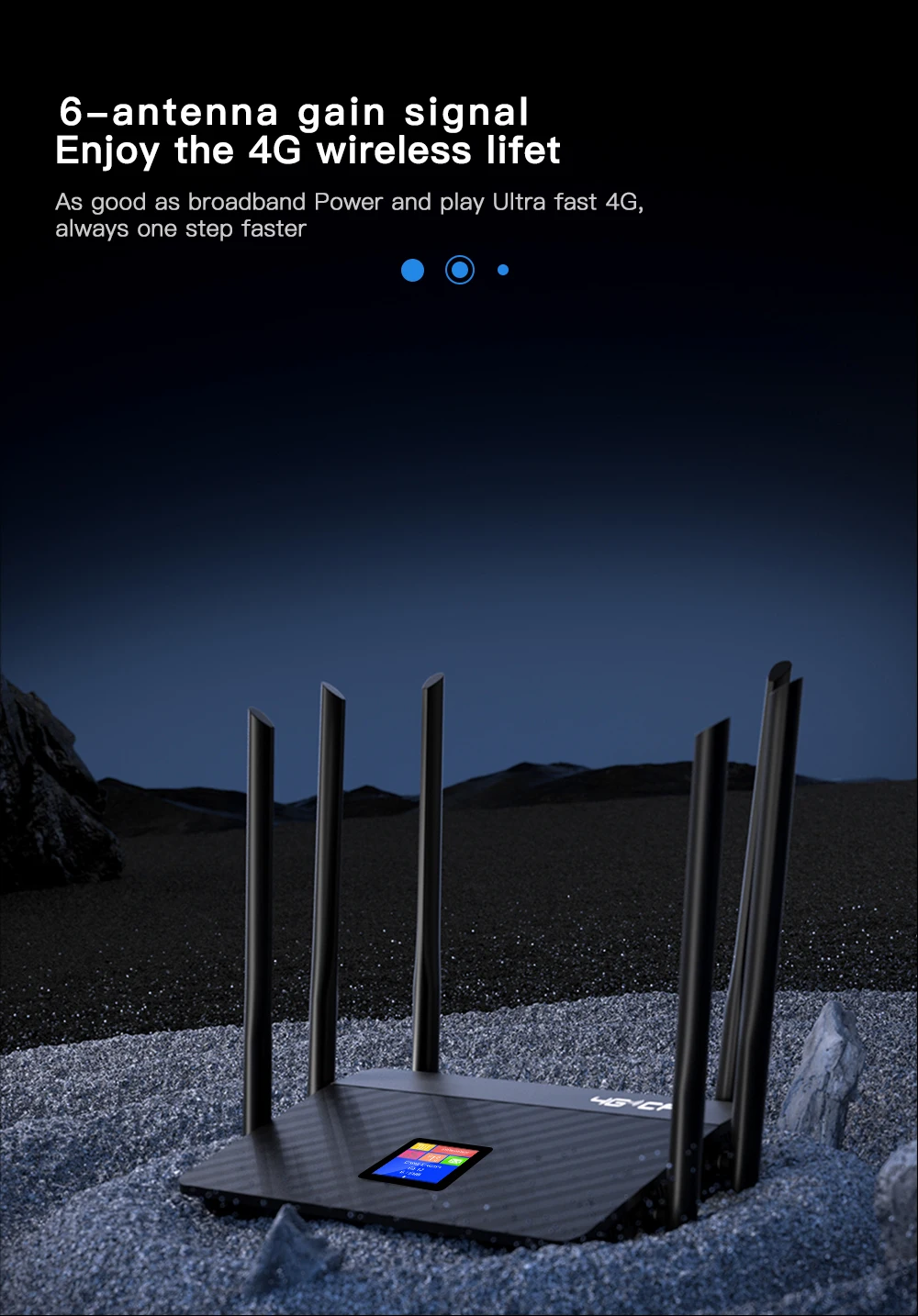 El enrutador 4G admite la conversión de redes 4G a señales Wi-Fi y la salida de redes 4G a otros dispositivos de red a través de puertos LAN.Con pantalla LCD