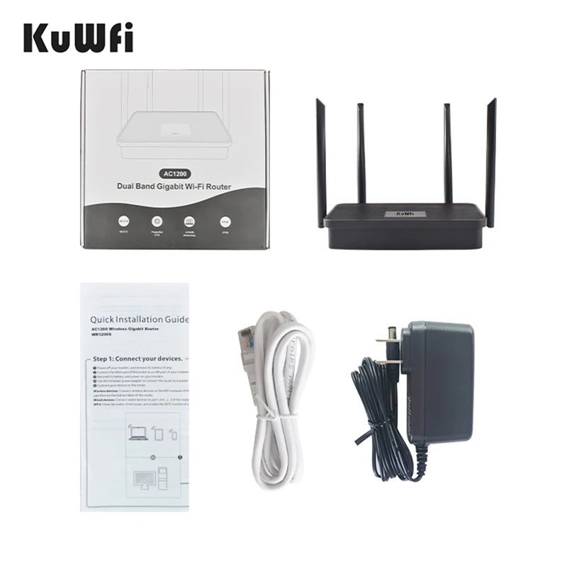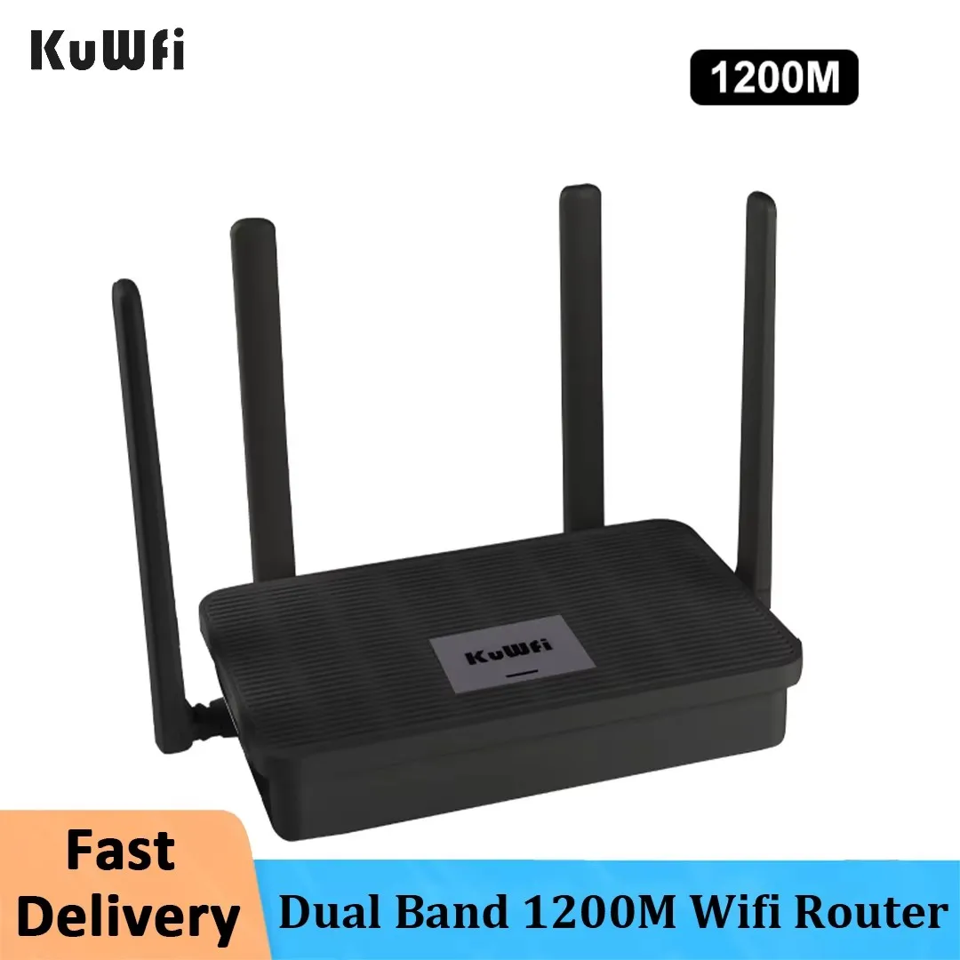 Comprar Enrutador Wifi KuWFi AC1200, alto rendimiento, 1200Mbps, banda Dual, 2,4G y 5GHz, enrutador inalámbrico inteligente para el hogar, 4 antenas para red