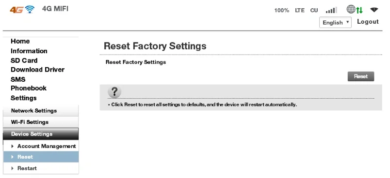 Restablecer la configuración de fábrica: Configuración del dispositivo Restablecer la configuración de fábrica, haga clic en "Reiniciar" para configurar la configuración de fábrica