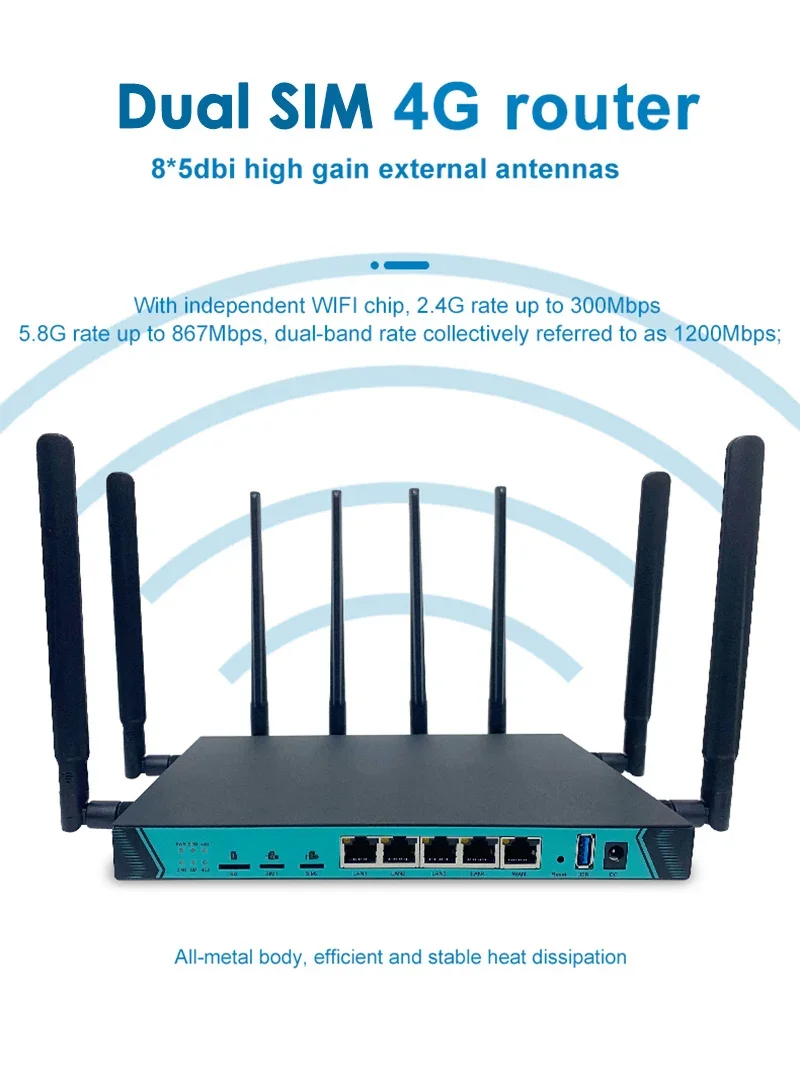 Comprar Enrutador Wifilyer Cat4 4G, enrutador Wi Fi 4G de 1200Mbps, tarjeta SIM Dual, módulo Dual, módem inteligentes duales, enrutador doméstico Openwrt Wifi