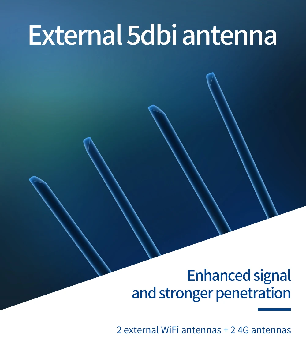 ◆Antenas externas 2*WiFi y 2*4G, distribución de señal inalámbrica de 360 grados