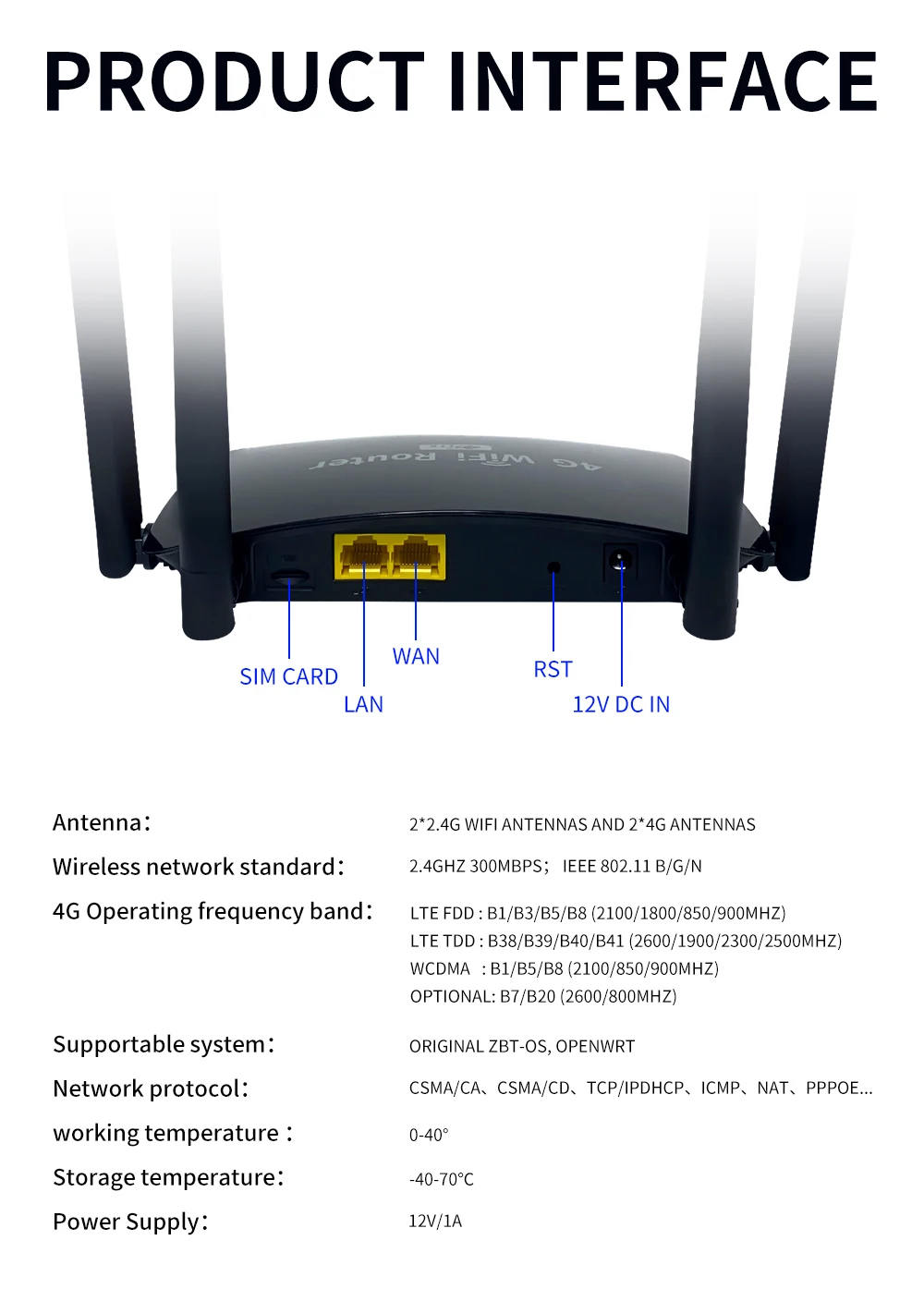 2. El producto se preinstalará con el último firmware OS/Openwrt antes del envío.Si necesita el firmware más reciente, comuníquese con mi correo electrónico.Descripción del producto;Enrutador SIM 4g compatible con banda de frecuencia 4G LTE,Módulo 4G EM03-EU Funciona en el interior en Europe, África, Asia, Brasil4G LTE FDD: B1/B3/B5/B8 (2100/1800/850/900MHZ)