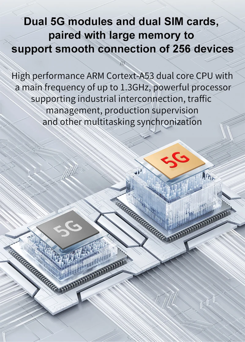 4 Admite la función 4G/5G (es necesario instalar el módulo 4G/5G dentro del enrutador)5 Interfaces 2*M.2 integradas, función de comunicación 5G ampliable, compatible con buses USB 3.0 y USB 2.0