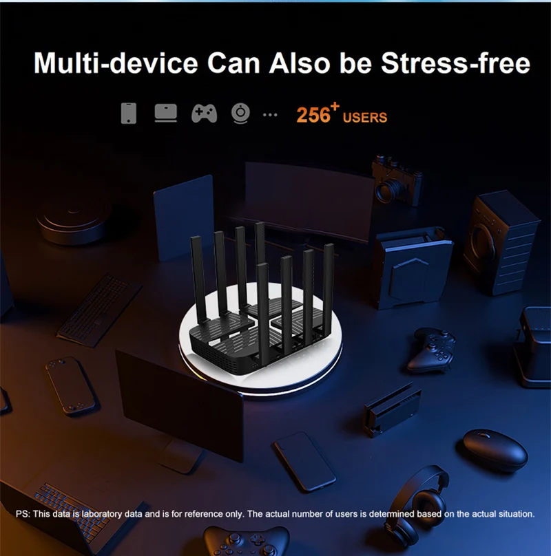 ● Admite MU-MIMO y el modo de modulación WiFi admite 1024-qam y OFDMA, puede conectar 256 usuarios de WiFi