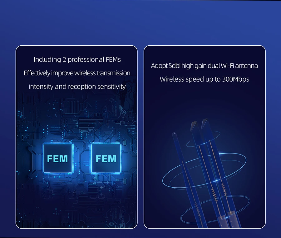IEEE 802.11b/G/n, 2,4 GHz, modo AP/STA/Repetidor