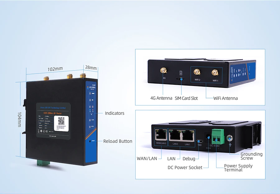 Comprar Enrutadores móviles industriales OPENVPN, dispositivo de red Ethernet 2G/3G/4G, carcasa de Metal de 300Mbps, USR-G806W-E, 3LAN, 4G, LTE