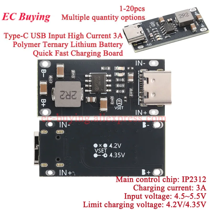Comprar Entrada USB tipo C, batería de litio ternaria de polímero de iones de litio de alta corriente 3A, placa de carga rápida IP2312 CC/CV 5V a 4,2 V 4,35 V