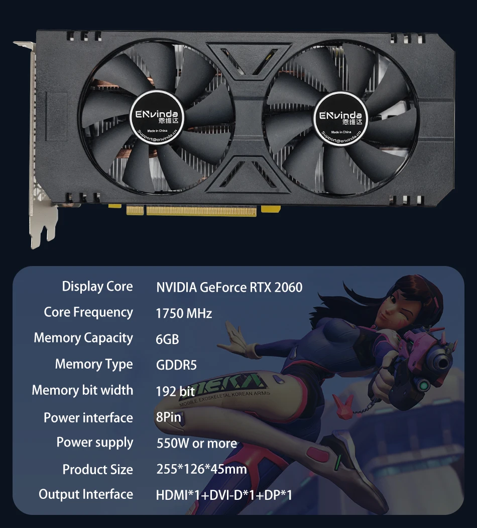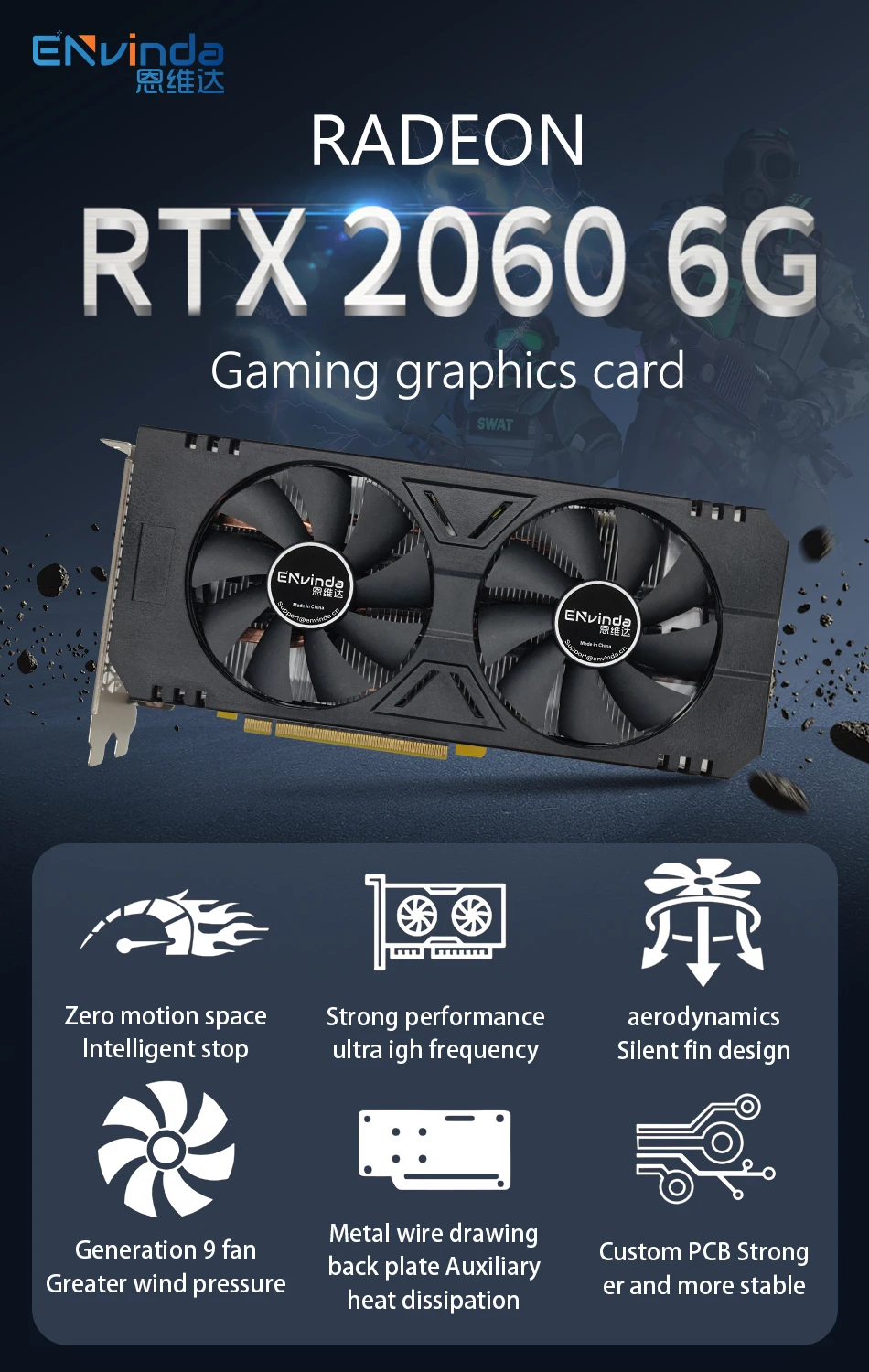 Comprar ENVINDA-tarjeta gráfica RTX 2060 6G usada, NVIDIA GDDR6 192bit PCI Express 3,0X16 GPU Rtx2060, 6GB, tarjeta de vídeo para juegos de escritorio