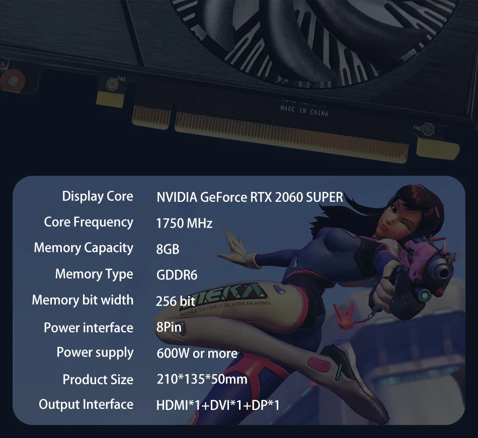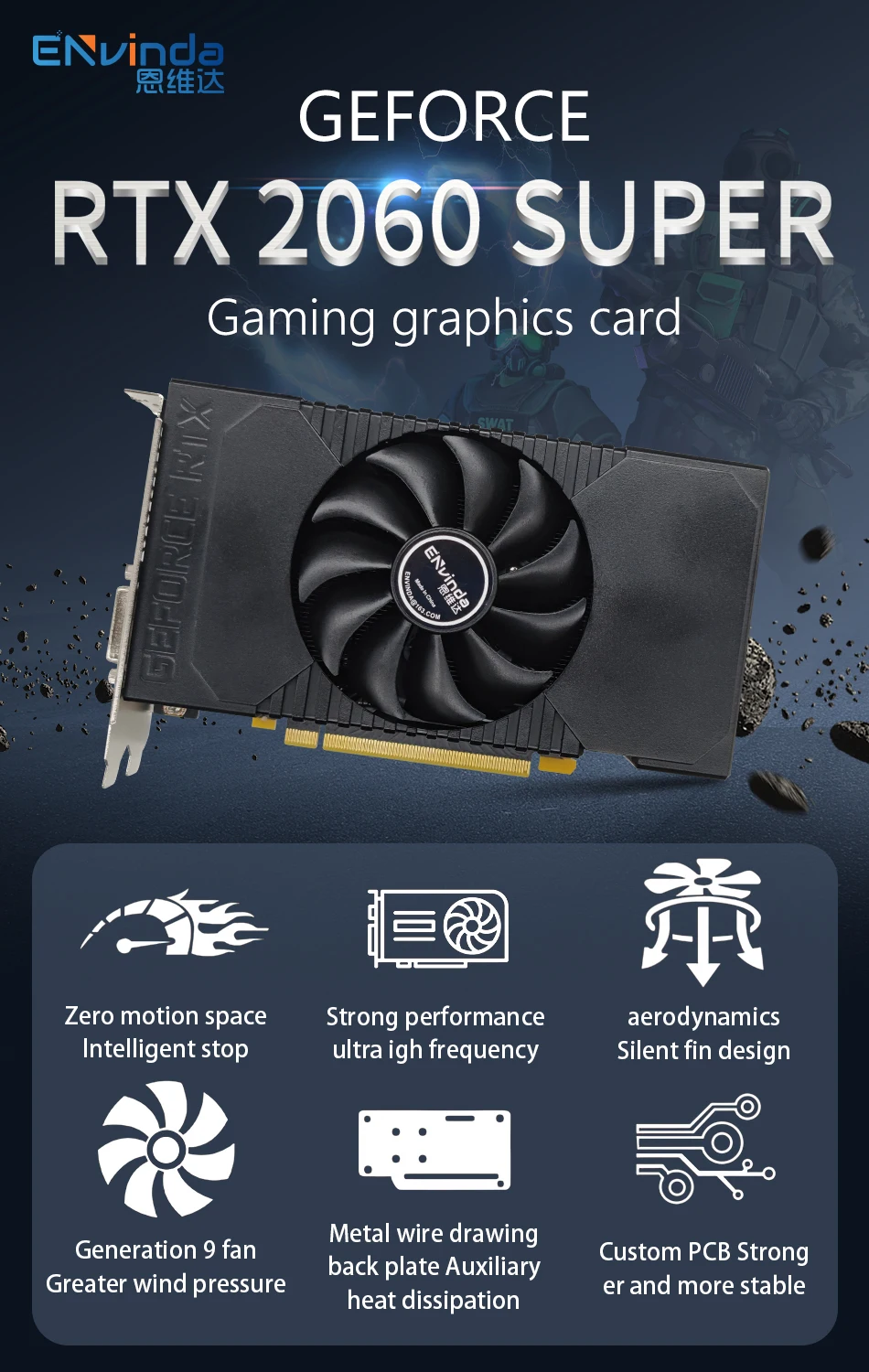 Comprar ENVINDA-tarjeta gráfica usada RTX2060 Super, 8GB, GDDR6, 256bit, PCI Express, 3,0x16, 1470MHz, 2176 unidades, RTX2060