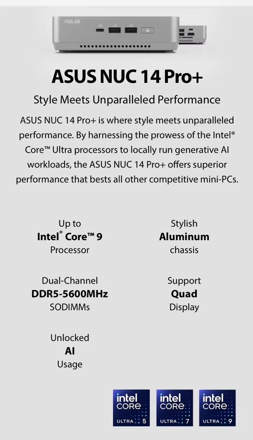 About this item ASUS NUC14 Pro+ NUC14RVSU5 / NUC14RVSU7 /NUC14RVSU9Ssee below):