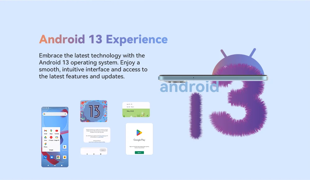 Adopte la última tecnología con el sistema operativo Android 13. Disfrute de una interfaz fluida e intuitiva y de acceso a las últimas funciones y actualizaciones.