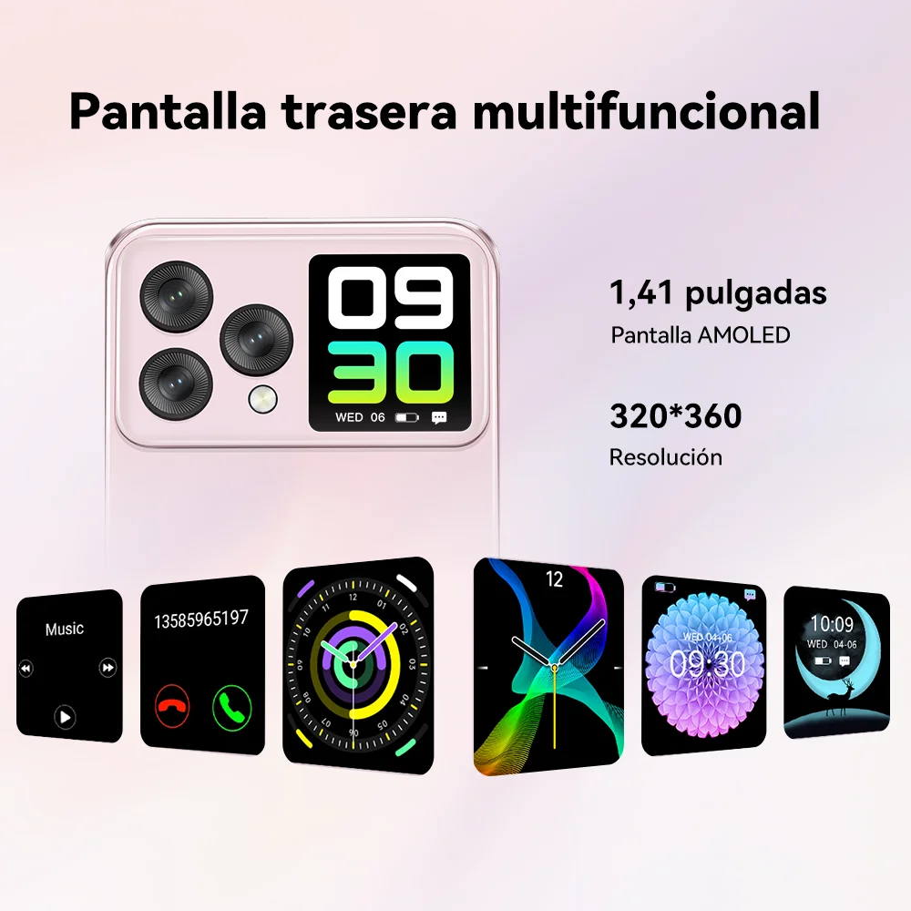 Experimente la innovación con la pantalla trasera AMOLED cuadrada de 1,41 pulgadas.Esta pantalla adicional brinda acceso rápido a notificaciones, tiempo y más, agregando un toque de practicidad a su dispositivo.