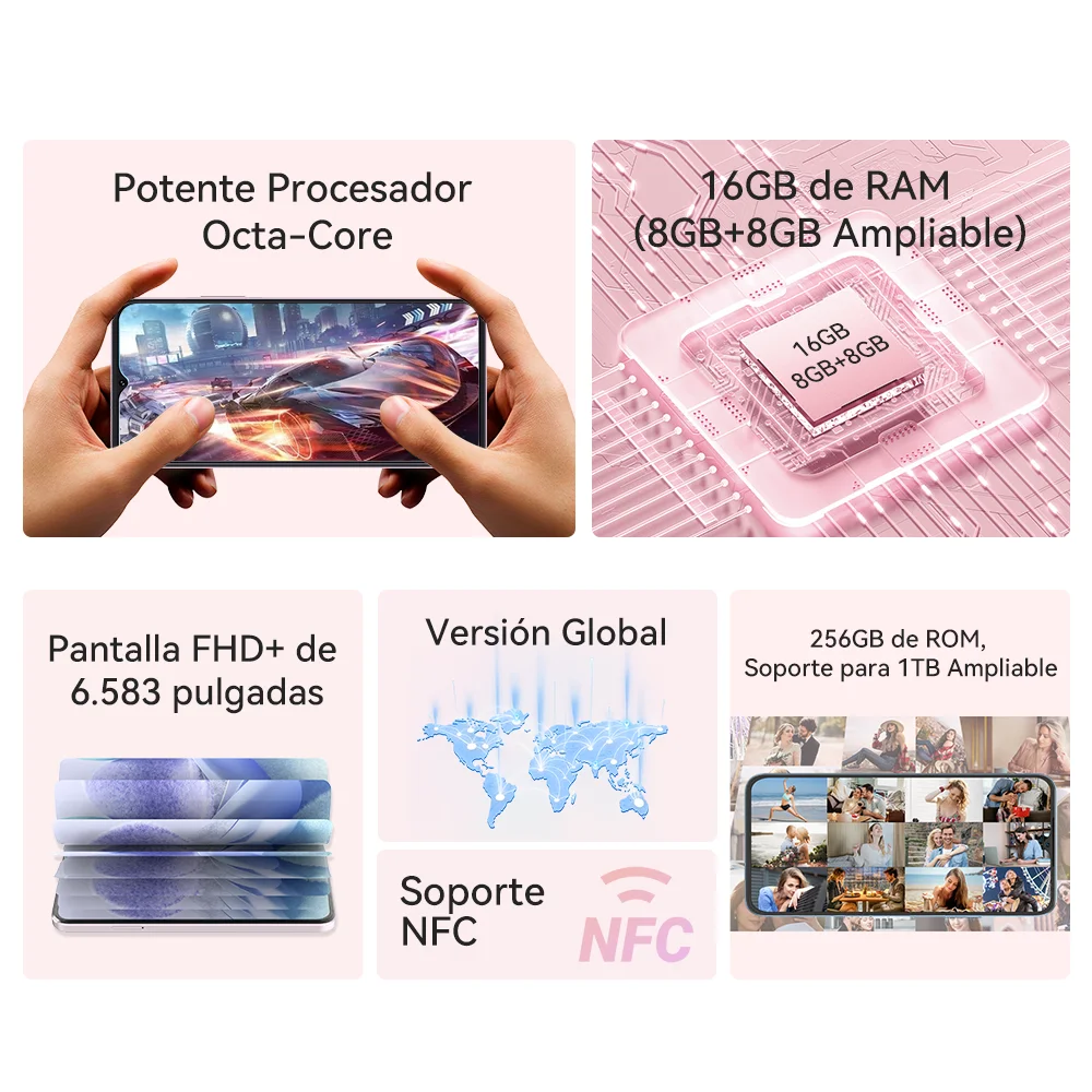 Sumérgete en un festín visual con la pantalla FHD+ IPS de 6,583 pulgadas.La resolución de 1080*2408 garantiza imágenes nítidas y vibrantes para su contenido multimedia, brindando una experiencia de visualización incomparable.