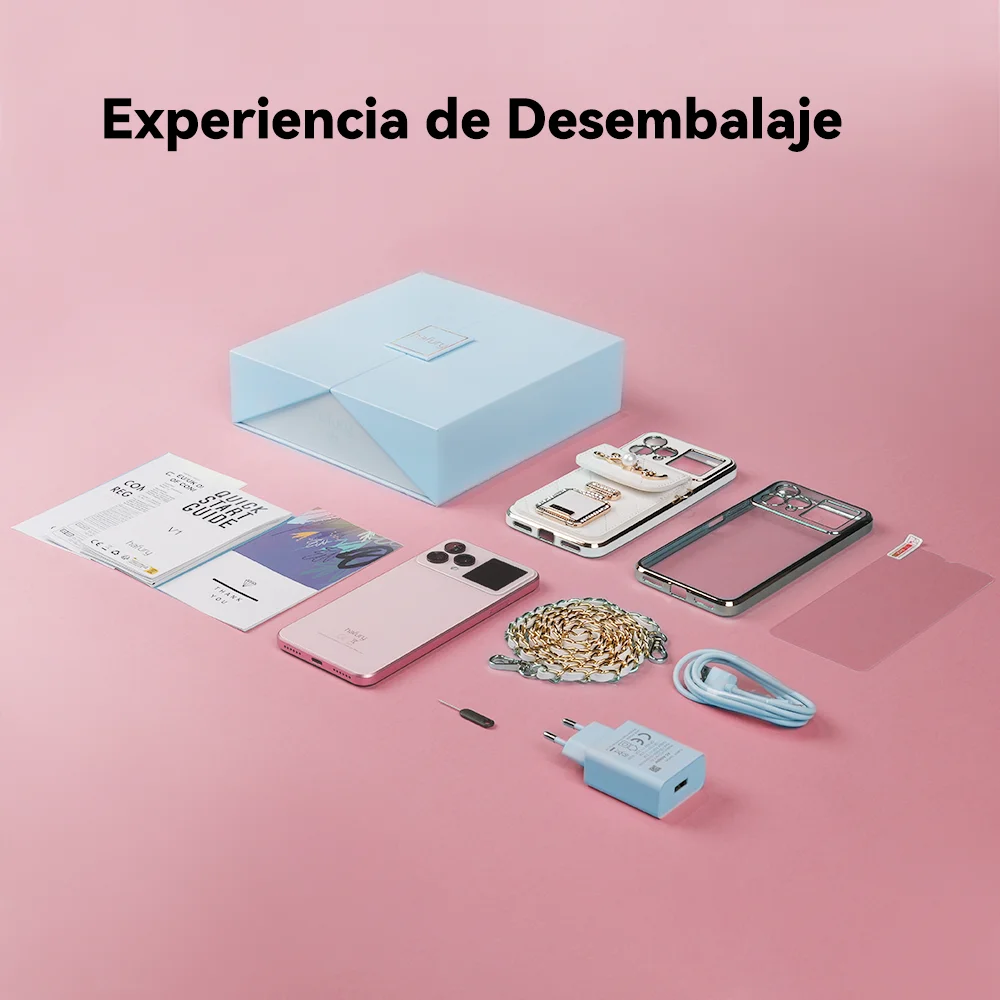 En el interior, el paquete incluye no sólo un teléfono inteligente, sino un conjunto de accesorios cuidadosamente seleccionados para complementar varios aspectos de tu vida.La caja contiene dos elegantes fundas para teléfonos, adaptables a diversos escenarios diarios, ya sea que se convierta en una declaración de moda como parte de su conjunto diario o como un escudo robusto que protege su teléfono de golpes y rayones.