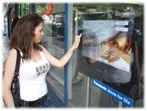 La película de lámina táctil interactiva es una película transparente sensible al tacto, fijada a la membrana en la parte posterior del vidrio o placa de acrílico transparente, los paneles de vidrio o cristal pueden transformar instantáneamente el tamaño de la pantalla táctil.