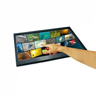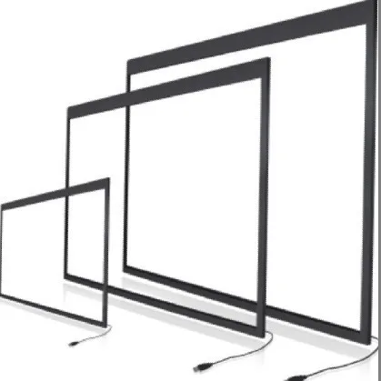 La pantalla táctil IR es un marco táctil que generalmente se instala delante de la pantalla de visualización. El marco está integrado con una placa de circuito impreso que contiene una línea de ir-leds y transistores de fotos ocultos detrás del bisel del marco táctil. Cada uno de los ir-leds y transistores de fotos se coloca en los lados opuestos para crear una rejilla de luz infrarroja invisible. El bisel protege las partes de la operación