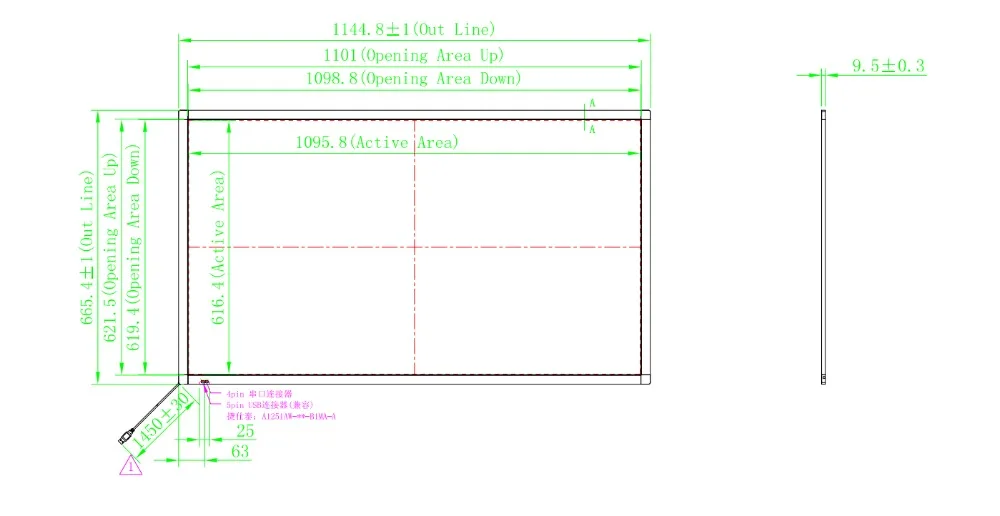 Pantalla multitáctil IR de 50 pulgadas y 20 puntos Tamaño del producto Dibujo: