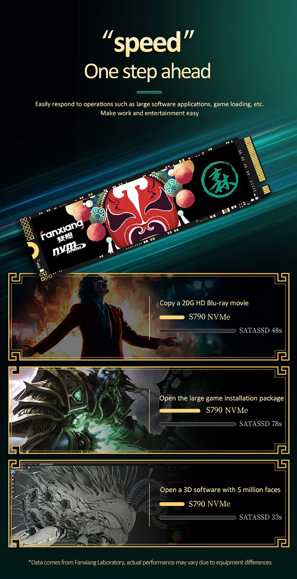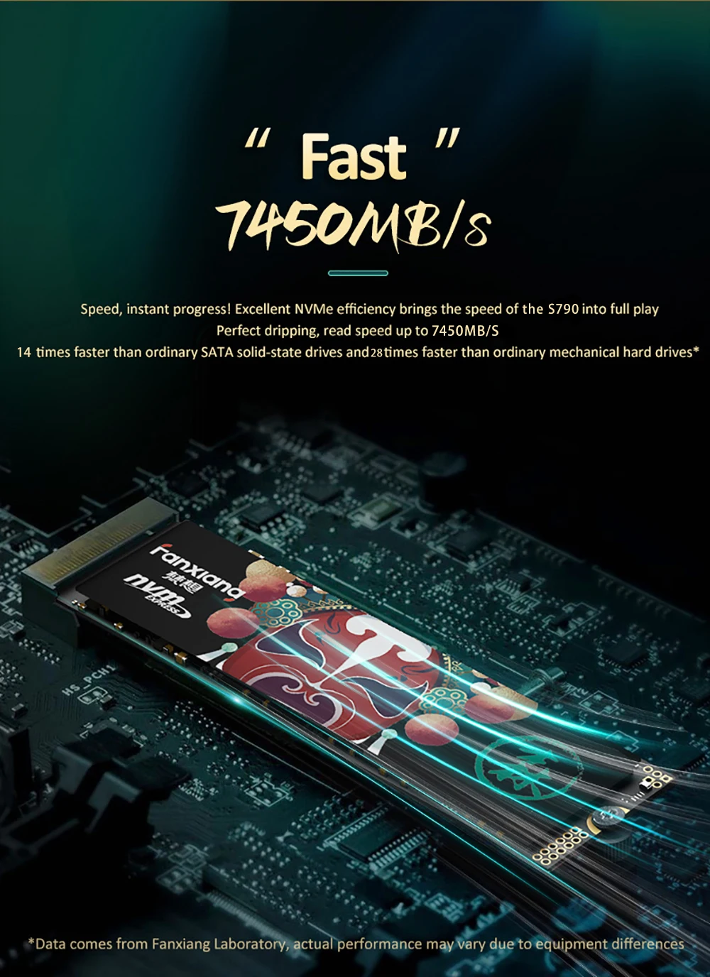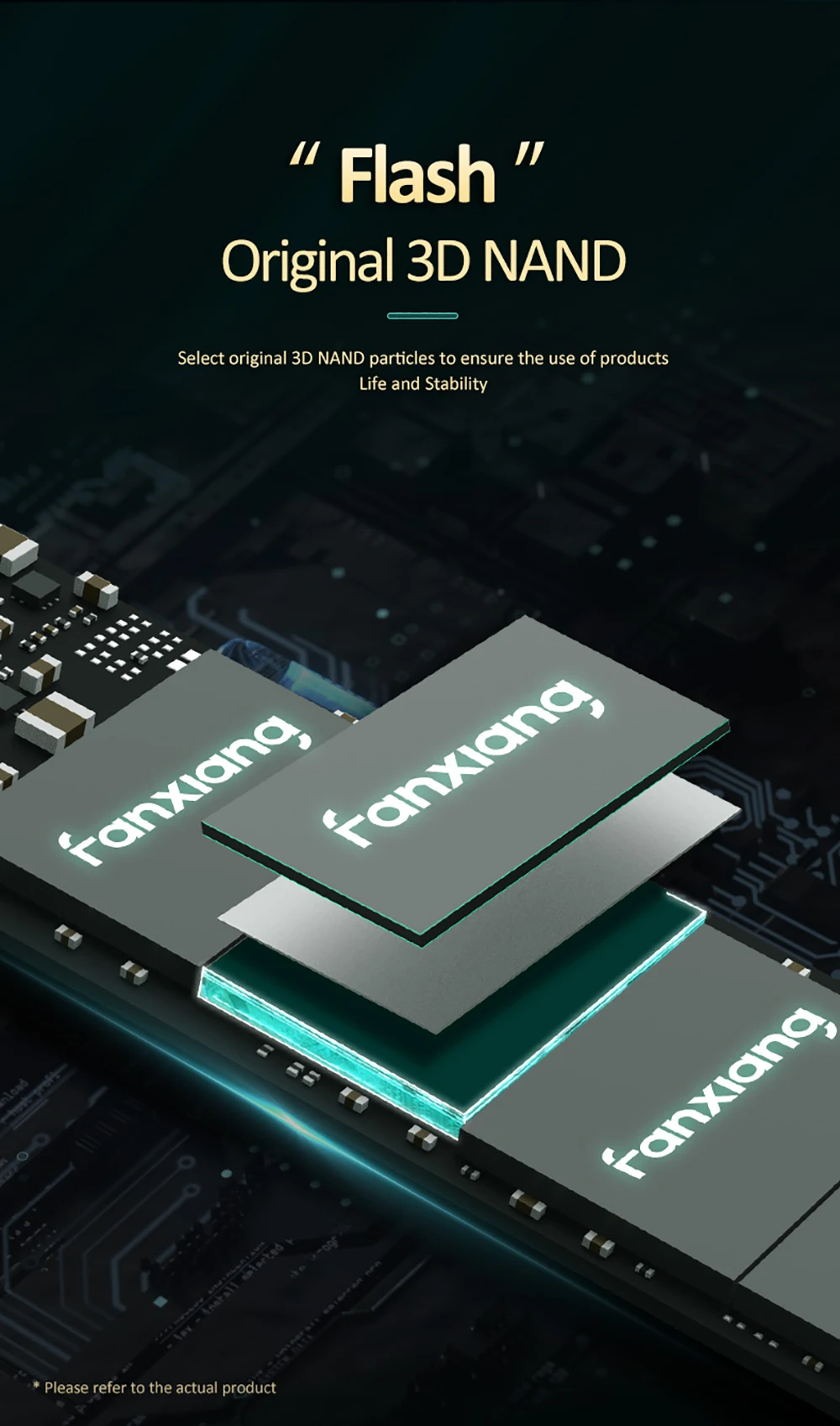 Fanxiang S790 ssd NVMe 2.0 utiliza tecnología 3D NAND y partículas TLC de alta calidad, lo que mejora aún más la vida útil y la estabilidad del producto.No hay mecanismo mecánico interno, buena resistencia a los golpes y alta seguridad de los datos.
