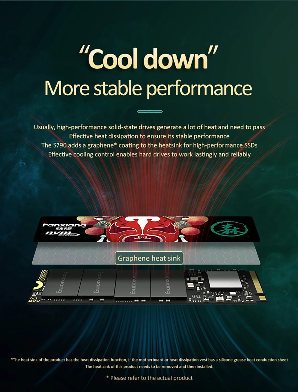 Fanxiang S790 M.2 SSD agrega pegatinas de disipación de calor de grafeno para proporcionar un control efectivo de disipación de calor para SSD interno, mejorar su rendimiento y vida útil, hasta 4000 TBW (TeraBytes Escritos)