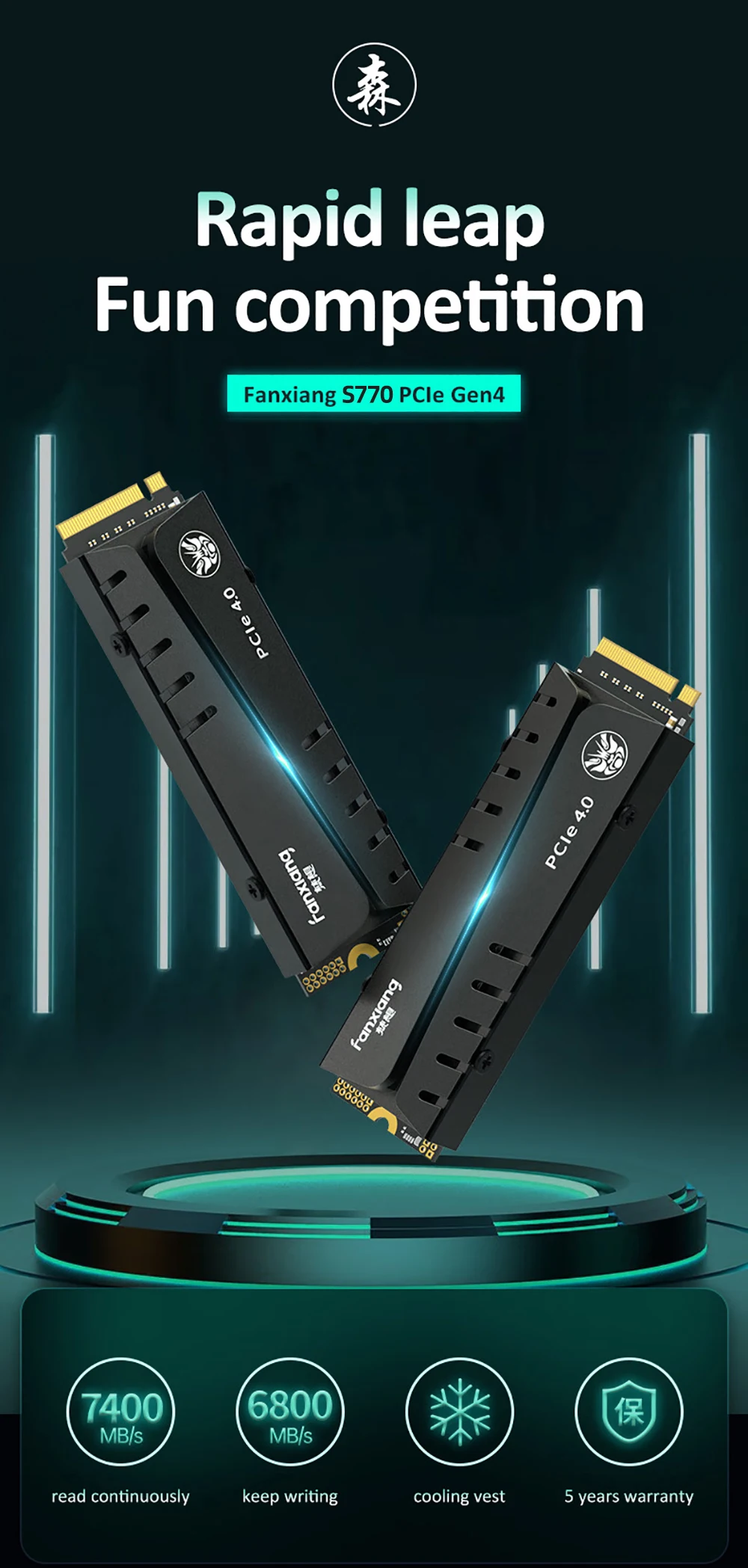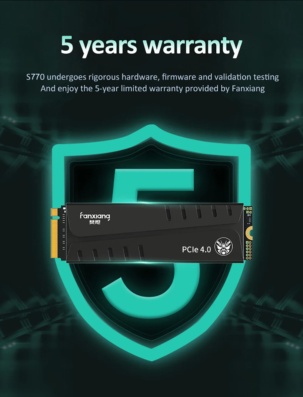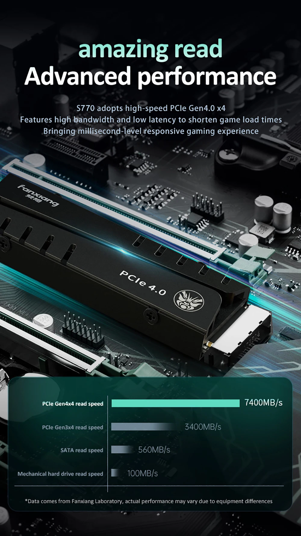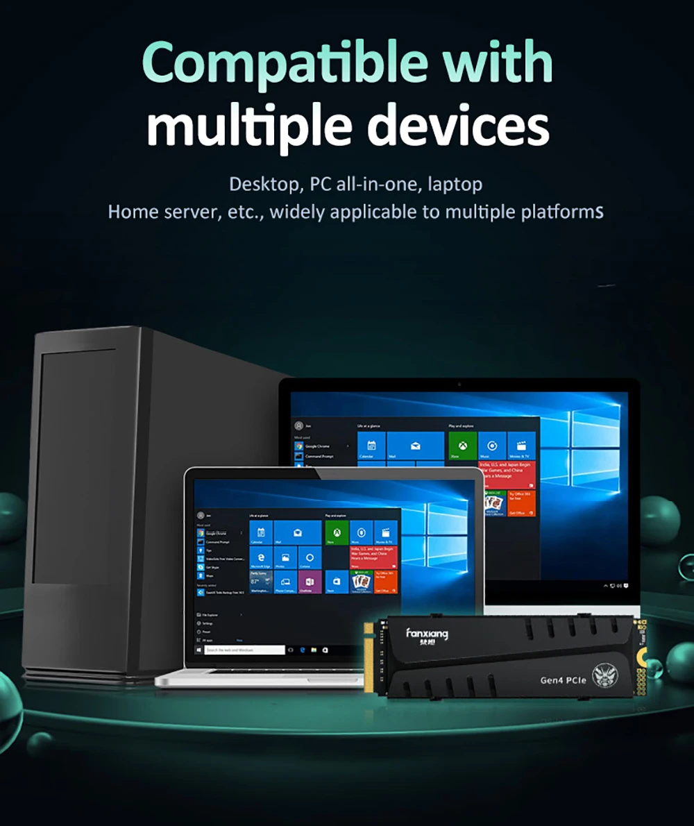 El disco duro interno Fanxiang S770 SSD es adecuado para PC, computadora portátil, máquina todo en uno, perfectamente compatible con Windows7/8/10 (la placa base de la computadora debe estar equipada con una interfaz M.2)