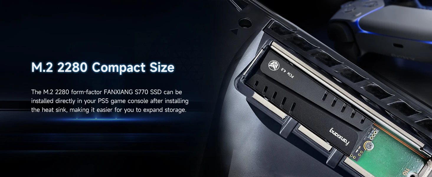 El SSD S770 M.2 presenta un diseño de disipador de calor (no instalado) que reduce efectivamente la temperatura del disco duro, asegurando un funcionamiento estable bajo cargas elevadas y también es perfectamente compatible con PS5. La instalación es rápida y sencilla.