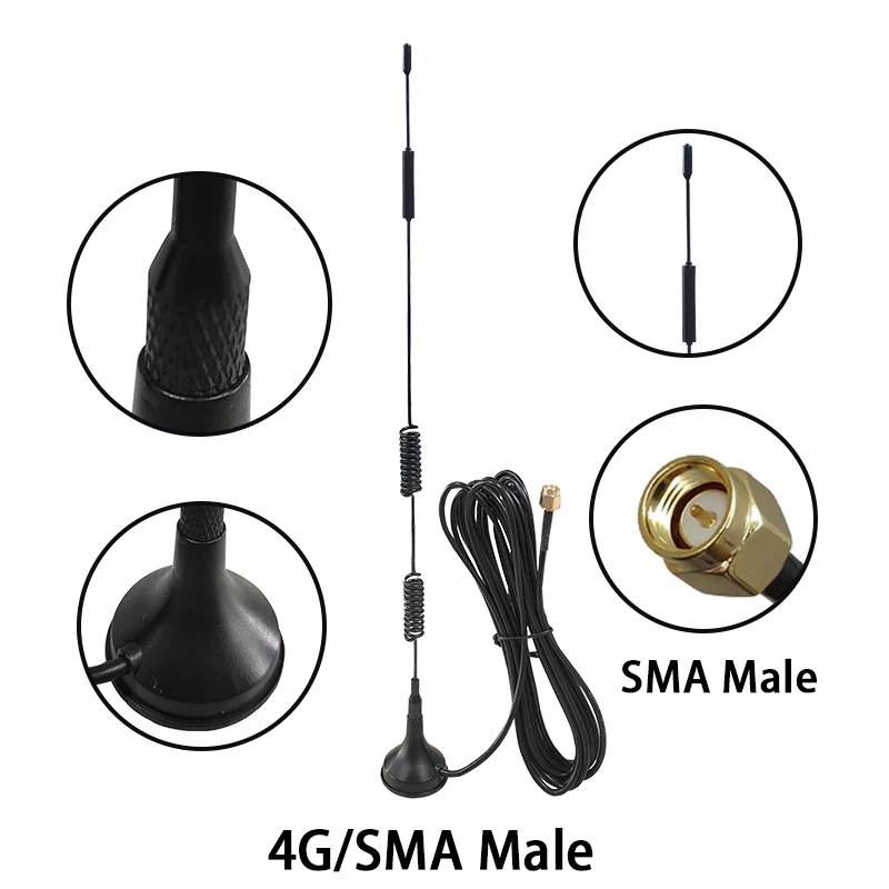 Eoth 1 2 uds 4G LTE antena 15dbi SMA conector macho hembra antena 698-960/1700-2700Mhz IOT base magnética 3M antena con ventosa transparente