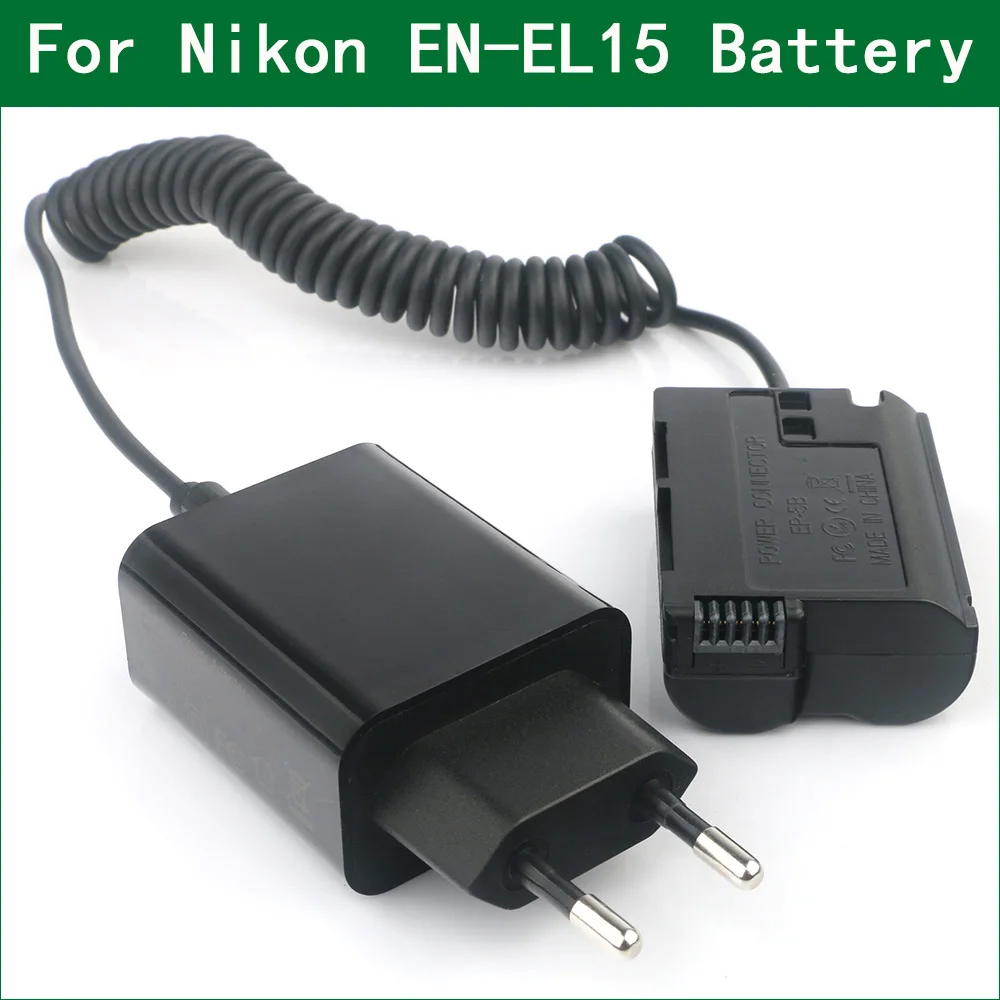 Acoplador de CC EP-5B (batería simulada EN-EL15) para cámaras Nikon D7500, Z5, Z6, Z7, Z6 II, Z7 II, D500, D600, D610, D750, D7100, D7200, D800, D800E, D810, D850, D800A,1V1 etc.