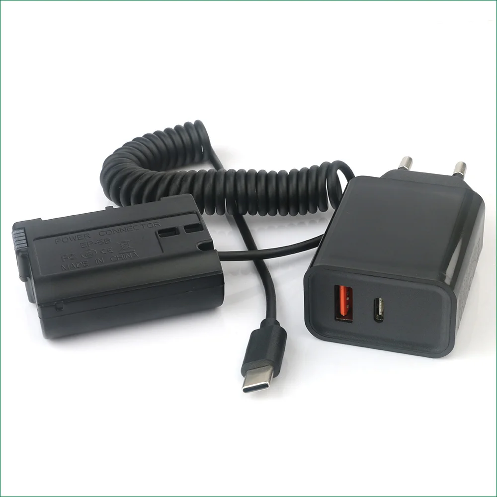 Recibirás: 1 acoplador CC tipo C EP-5B (batería ficticia EN-EL15) + 1 cargador USB-C
