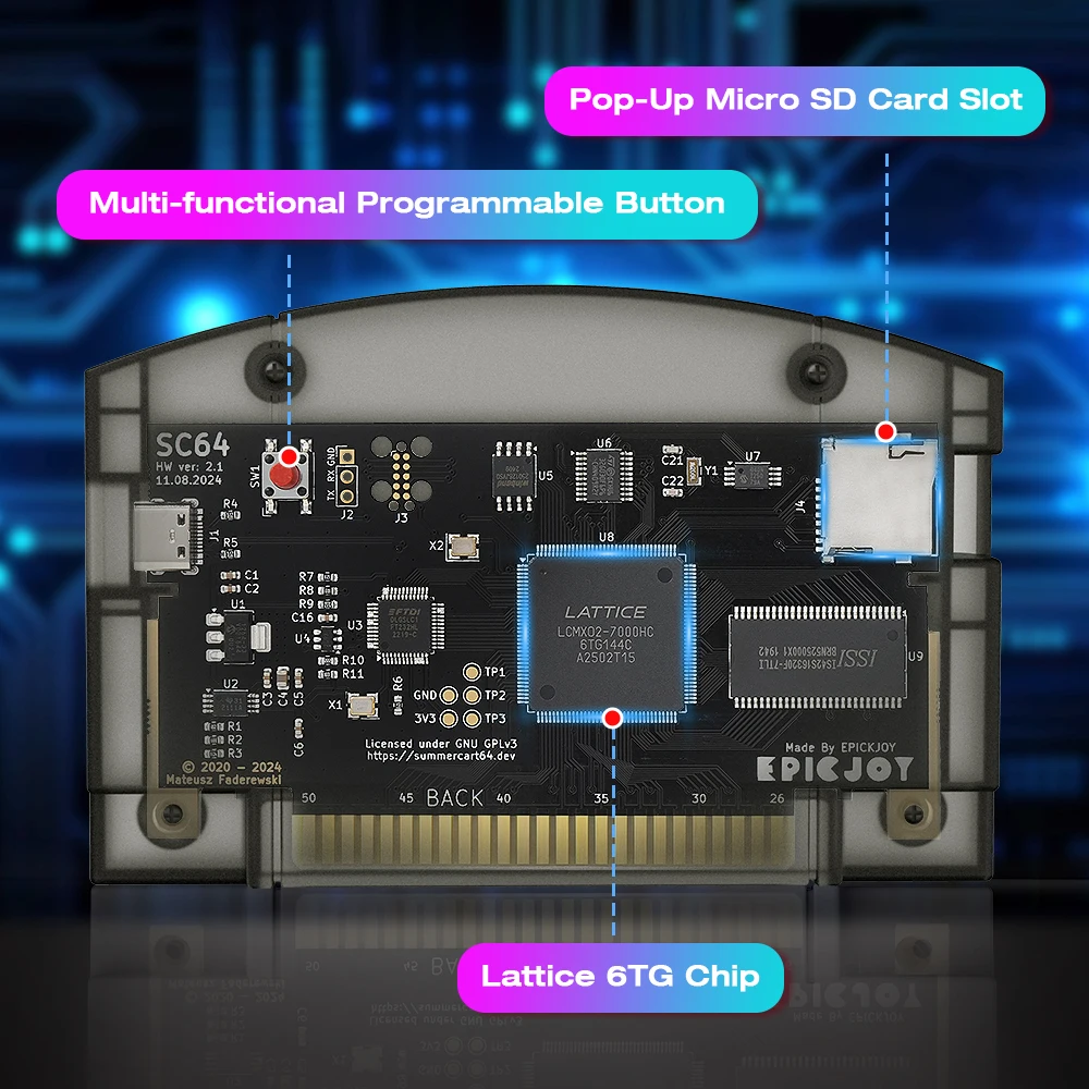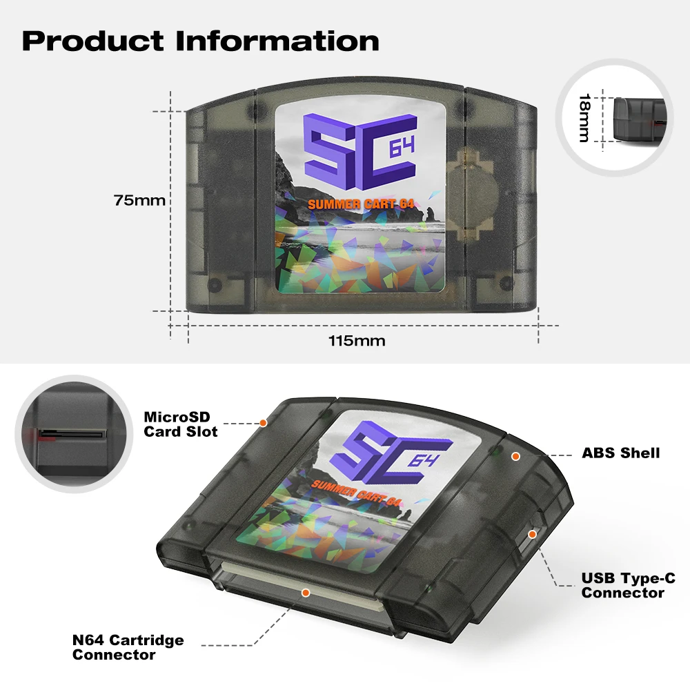 SummerCart64 es una tarjeta de juego totalmente abierta diseñada para Nintendo 64 (N64), perfecta tanto para jugadores como para desarrolladores.Ya sea que desee revivir los recuerdos de su infancia o desarrollar sus propios juegos caseros, SummerCart64 lo tiene cubierto.