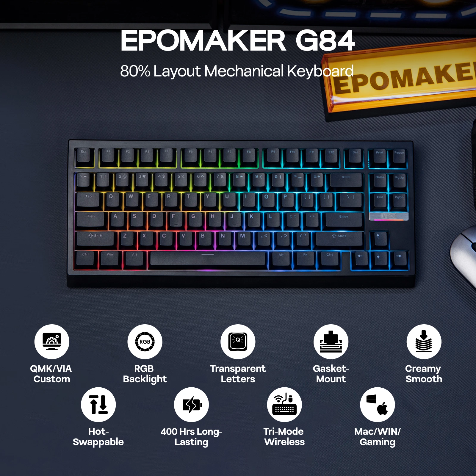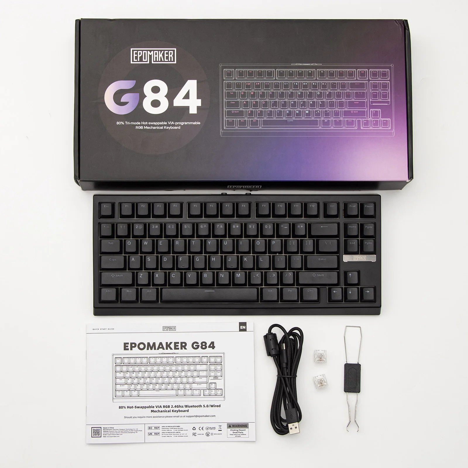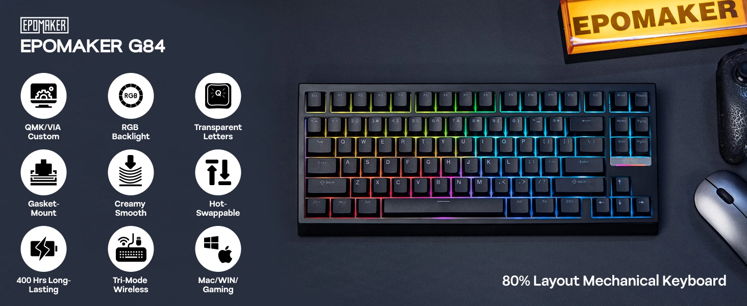 EPOMAKER G84 VIA 80 % de diseño de intercambio en caliente, teclado mecánico inalámbrico con cable/2,4 GHz/Bluetooth con retroiluminación RGB