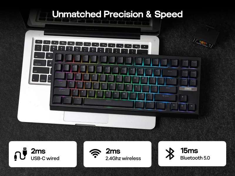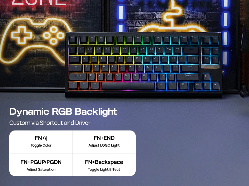 Juega como un profesional con nuestro teclado mecánico para juegos G84, con un equilibrio entre sonido, sensación y rendimiento de juego premium.Con tecnología de baja latencia y funciones anti-ghosting, cada pulsación de tecla se registra con precisión sin importar cuán intensa sea la acción.Con estabilizadores bien sintonizados, chips a nivel de juego y un potente firmware con soporte NKRO, pulsaciones de teclas perdidas y retrasos en el momento crucial serán la preocupación en el pasado.Juegos de ritmo rápido o maniobras combinadas complejas, el G84 lo cubre para diversas situaciones de juego con tiempos de respuesta rápidos