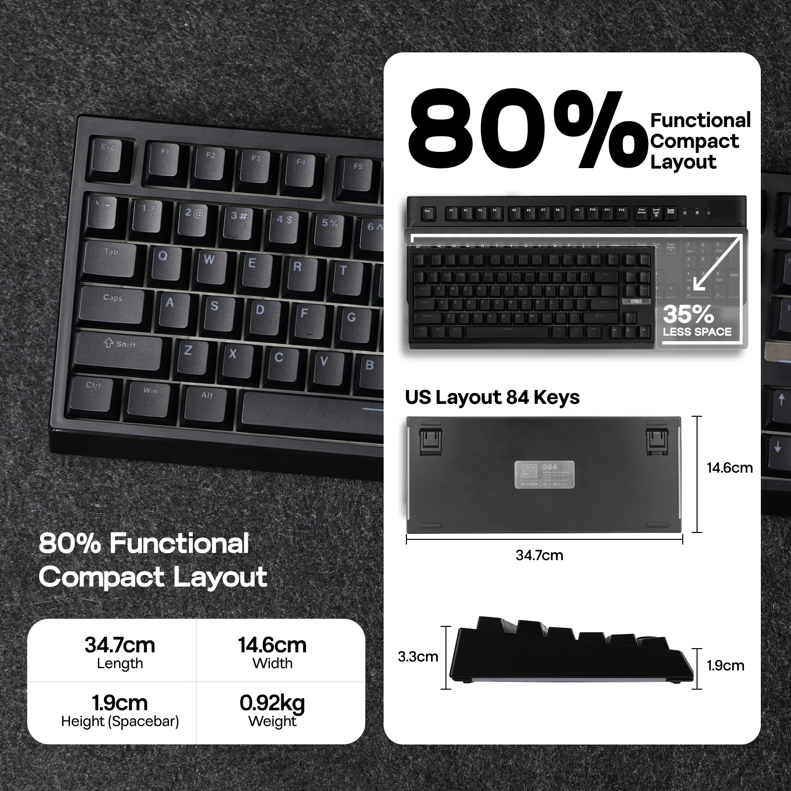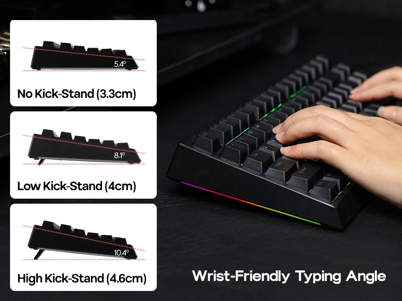 Experimente la máxima flexibilidad con nuestro teclado para juegos G84 con 3 modos de conexión y un diseño único del 80% recientemente moderno entre los jugadores.Compatibilidad moderna, elegante y versátil, G84 tiene todo en cuenta el diseño al presentar un control intuitivo de tres modos en la parte superior y un espacio de almacenamiento oculto incorporado para 2.Receptor de 4 Ghz debajo de su soporte, que es ajustable en 2 etapas para ofrecer un ángulo de escritura cómodo en escenarios variados.Ya sea que prefiera una PC, una tableta, una computadora portátil o un teléfono, la conexión estable G84 ofrece libremente el desorden de cables.