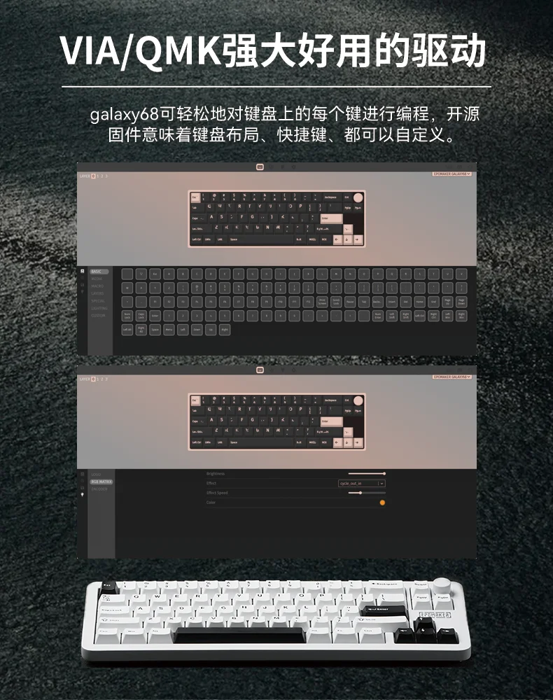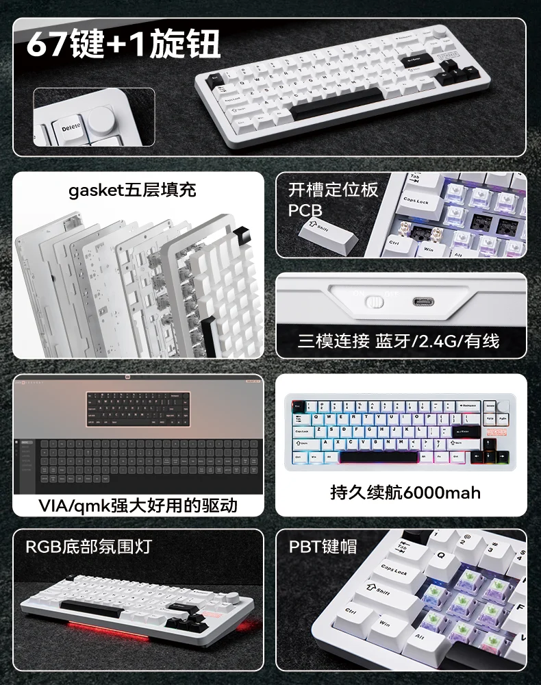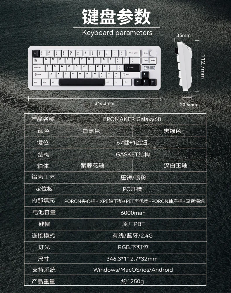 Teclado mecánico EPOMAKER Galaxy68 de aluminio CNC inalámbrico Bluetooth 3 modos RGB junta de intercambio en caliente personalizada a través de/teclado qmk