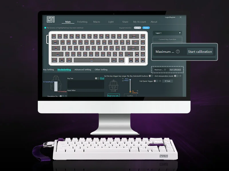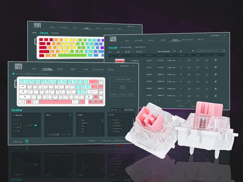 Experimente la revolución de Snap Key (SOCD), ya que nuestro HE68 prioriza su última pulsación de teclas de direcciones opuestas, asegurando que cada movimiento se ejecute a tiempo sin que su personaje se congele en el acto.Libere combos devastadores más rápido grabando y vinculando macros en el software EPOMAKER y consiga cero disparos con la función anti-ghosting para una ejecución instantánea.