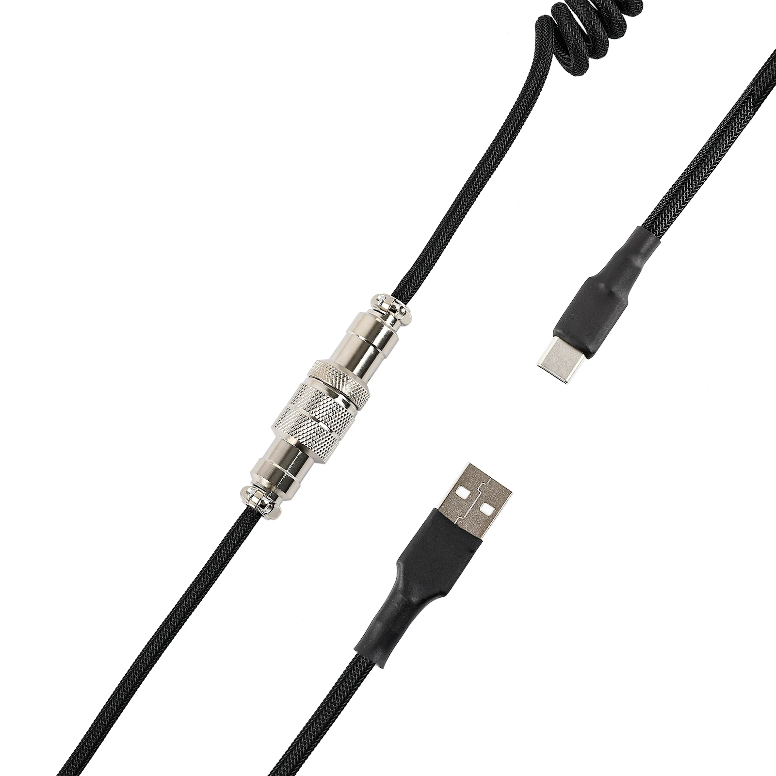 EPOMAKER Mix V2 Cable de teclado en espiral de 1,8 m USB C a USB A Cable de doble funda para teclado mecánico para juegos con aviador de metal desmontable para teclado personalizado