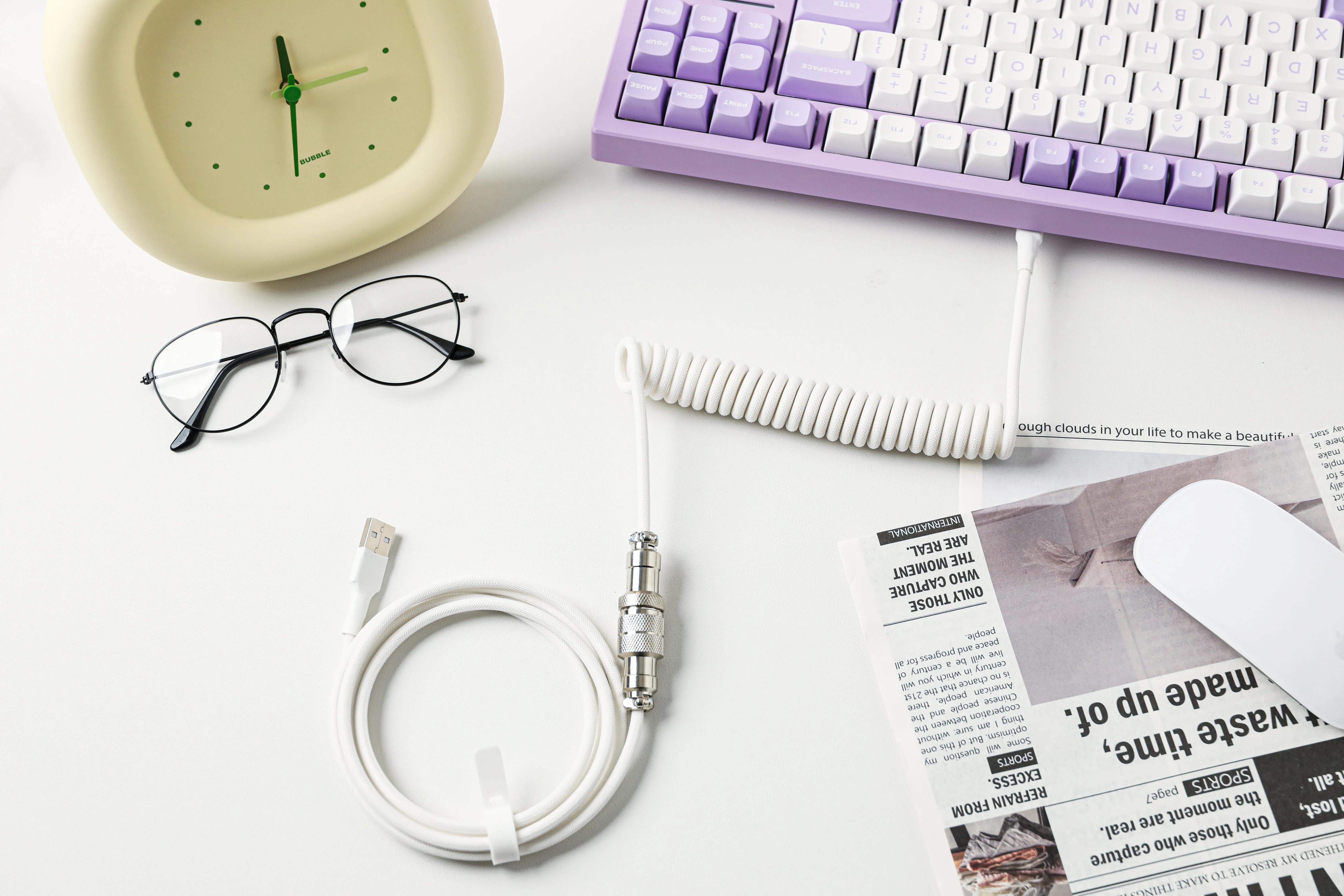 El cable de teclado en espiral EPOMAKER Mix V2 mejora su configuración con una práctica correa para un almacenamiento ordenado, manteniendo el cable portátil y libre de enredos.Su diseño de bobina mejorado evita el estiramiento excesivo, asegurando una flexibilidad y longitud óptimas.La estructura duradera de doble funda y el conector de aviador de metal de intercambio rápido hacen de este cable un complemento estilizado y esencial para cualquier escritorio.