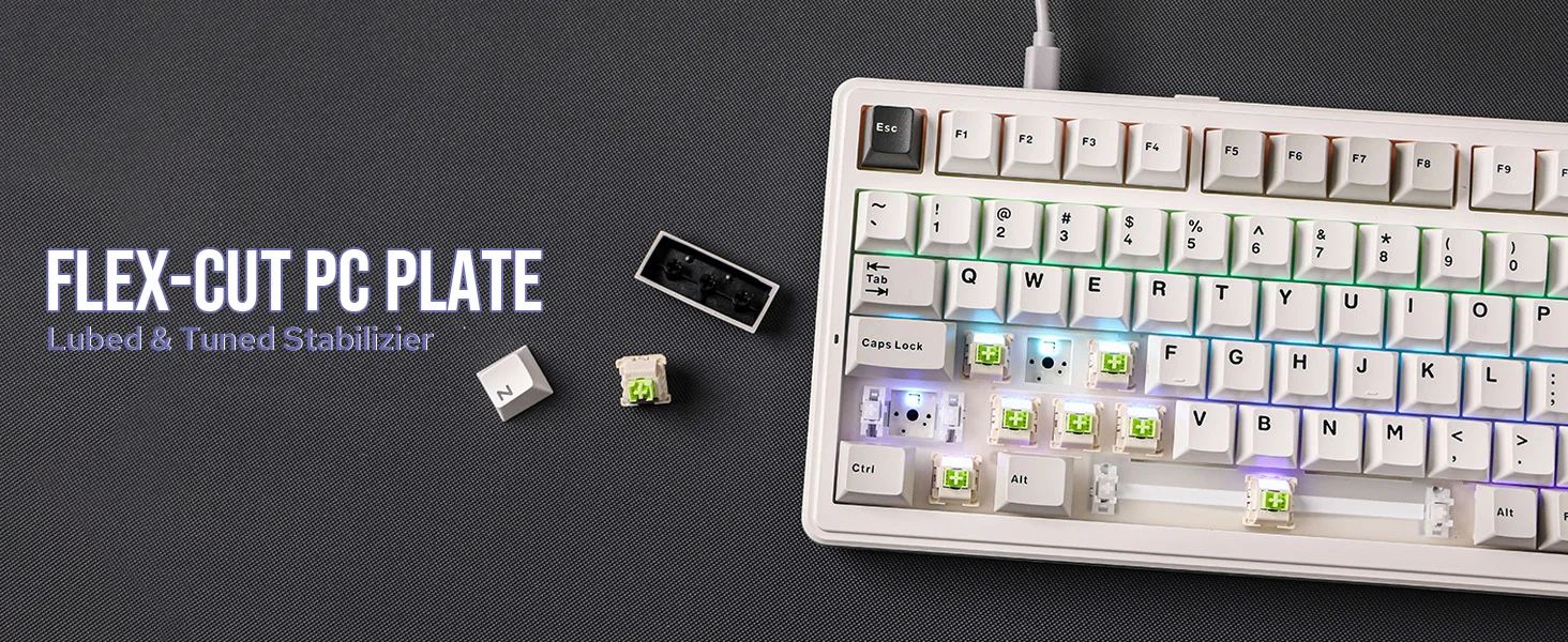 Con una PCB ranurada de una sola tecla exclusiva hecha de material FR4 de alta calidad, el F99 ofrece una respuesta de escritura fluida.Cada tecla está ranurada de forma independiente, lo que mejora la nitidez y la precisión de las pulsaciones de teclas.