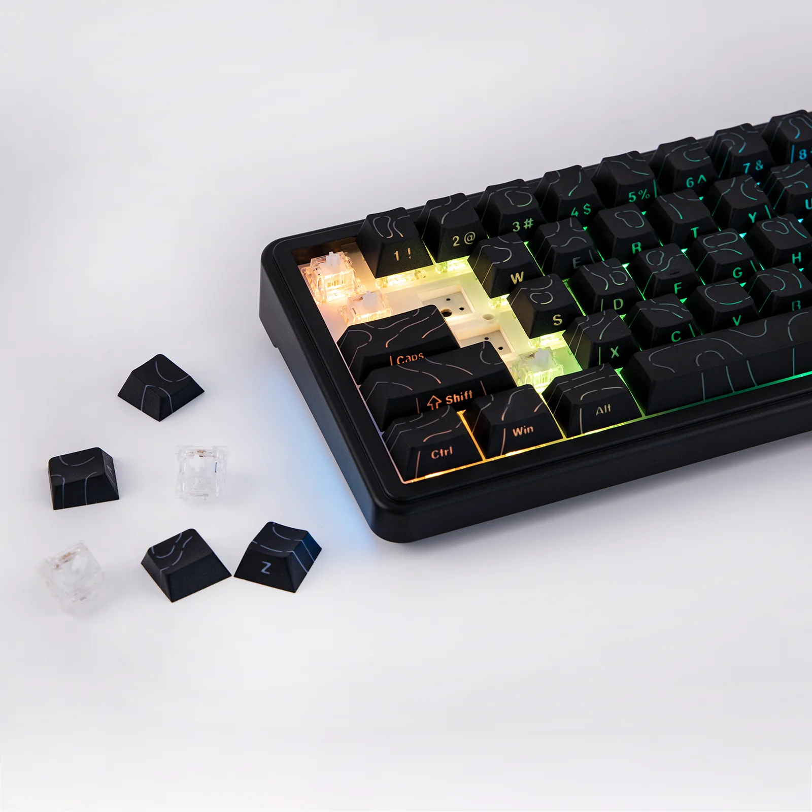 Amortiguación de sonido: 5 capas: almohadilla para sándwich, almohadilla para interruptor IXPE, almohadilla para mejorar el sonido de PET, espuma inferior y silicona inferior.